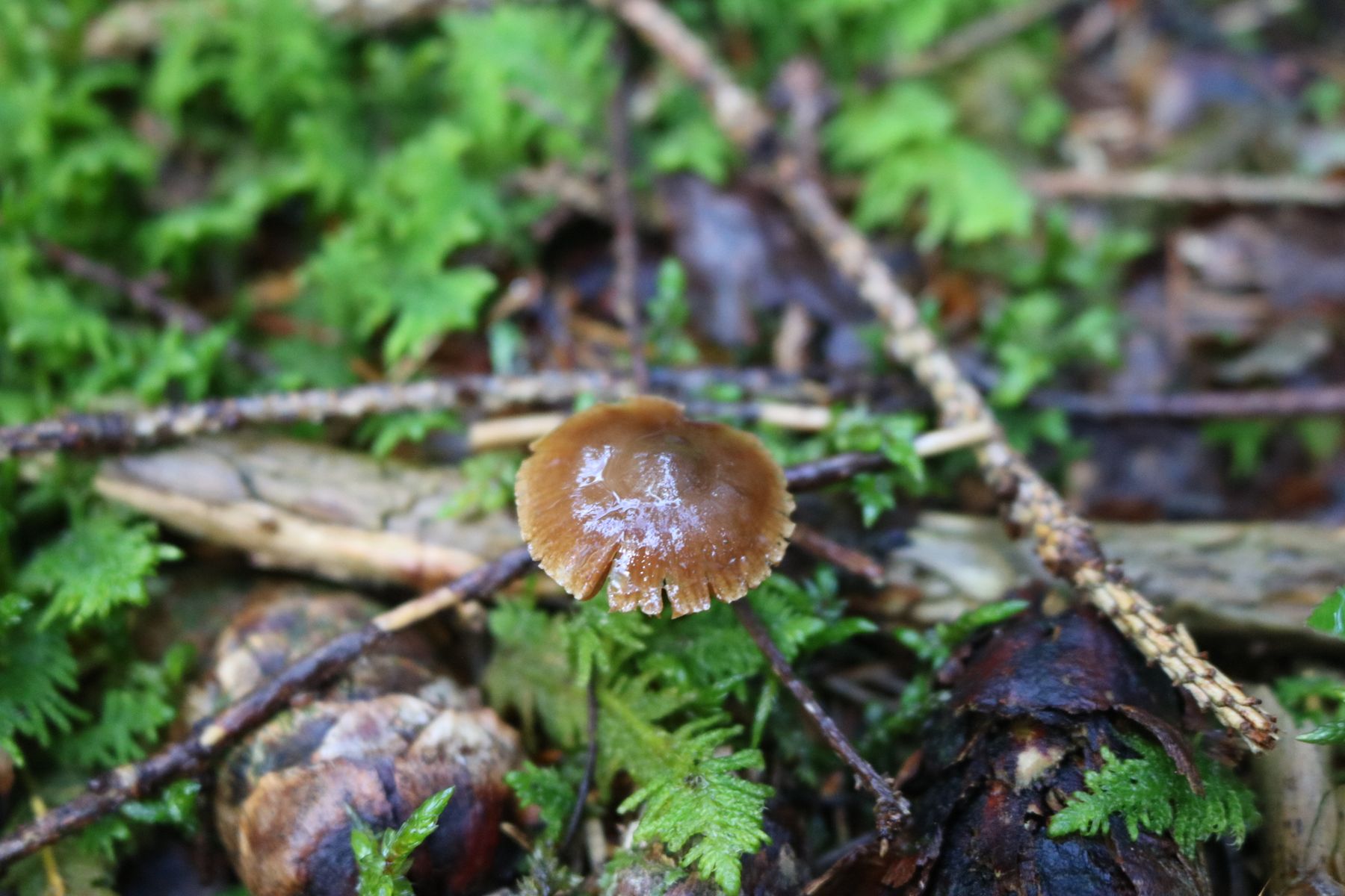 Ziemlich sicher hatte dein Fruchtkörper auch Zwischenlamellen (Blätter, die nicht vom Hutrand bis zum Stiel durchgehen). Man sieht sie nur nicht, da die Blätter so gekräuselt sind.