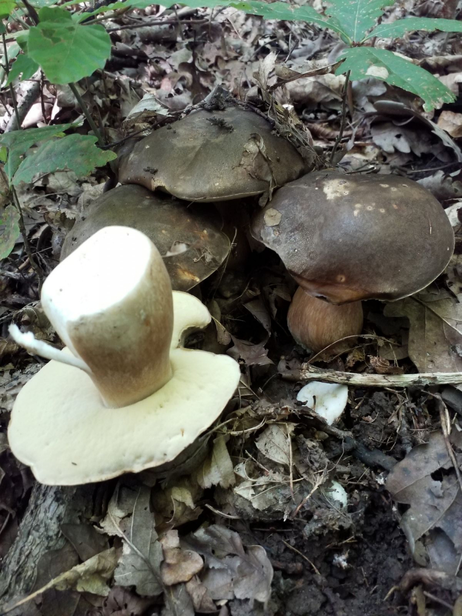 Die Hüte waren auffällig dunkler als bei den Sommersteinpilzen nebenan.