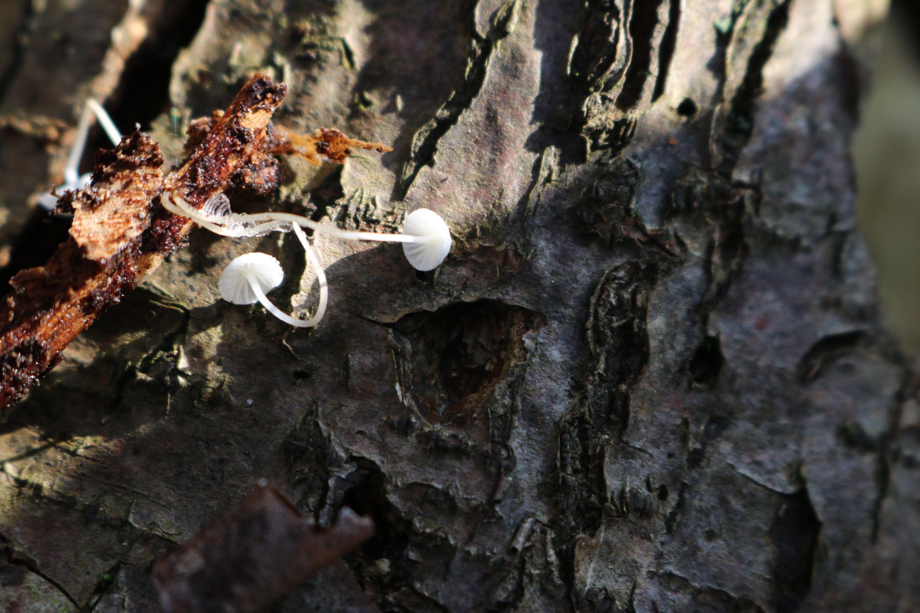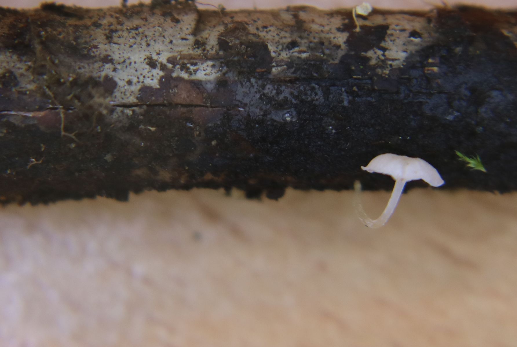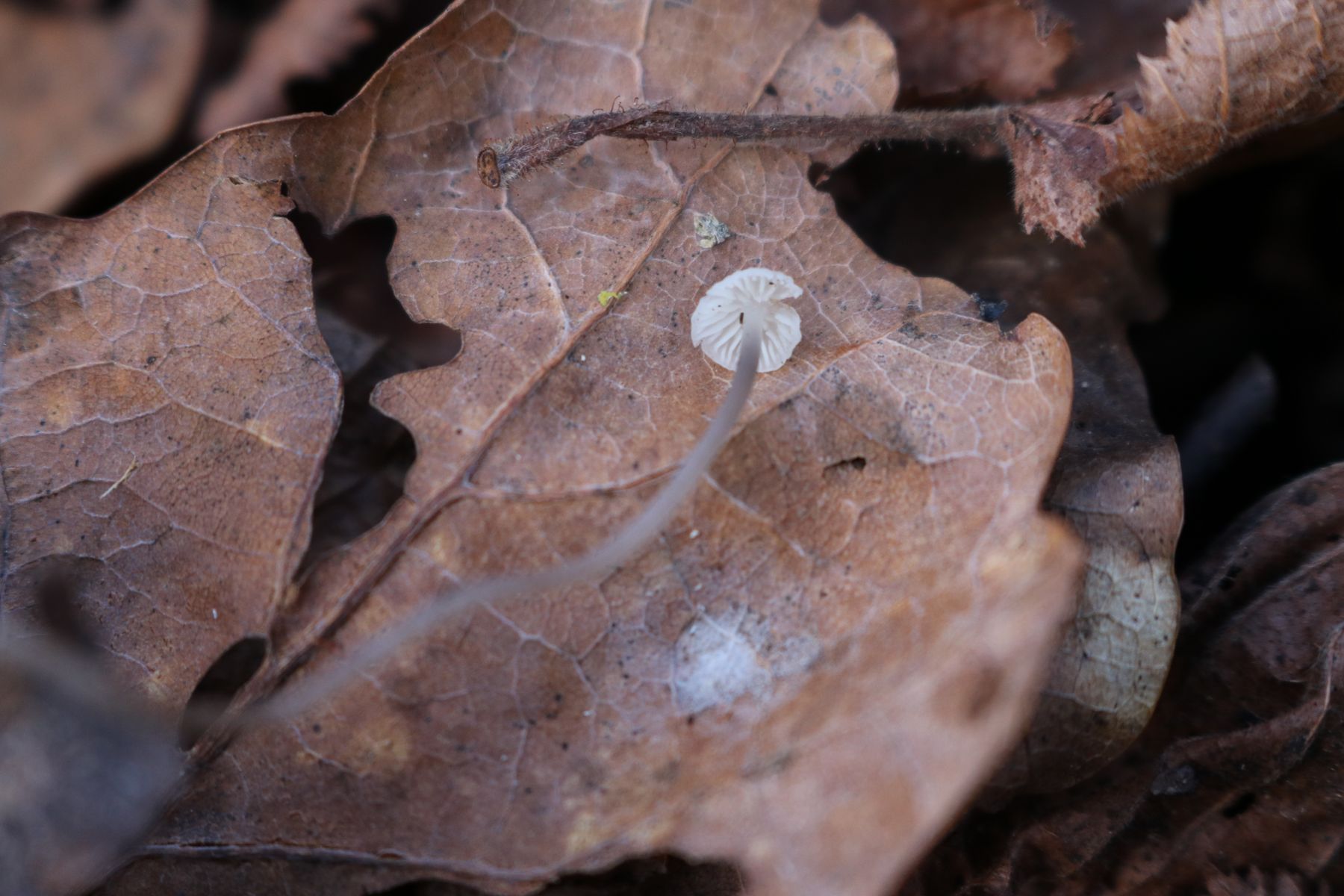 Die Lamellen stehen für mich entfernt. Das spricht laut Winkler für Marasmius. Dort gibt es aber nichts, was auch nur annähernd passen würde. Deshalb gehe ich gleich zu Mycena und den ähnlichen weiter.