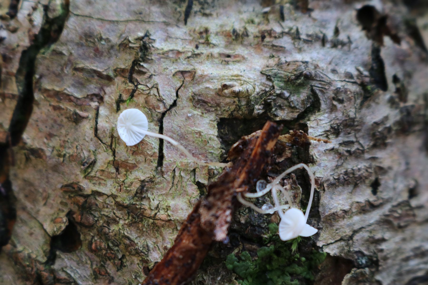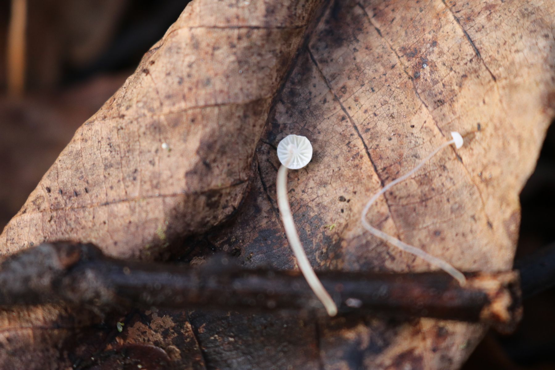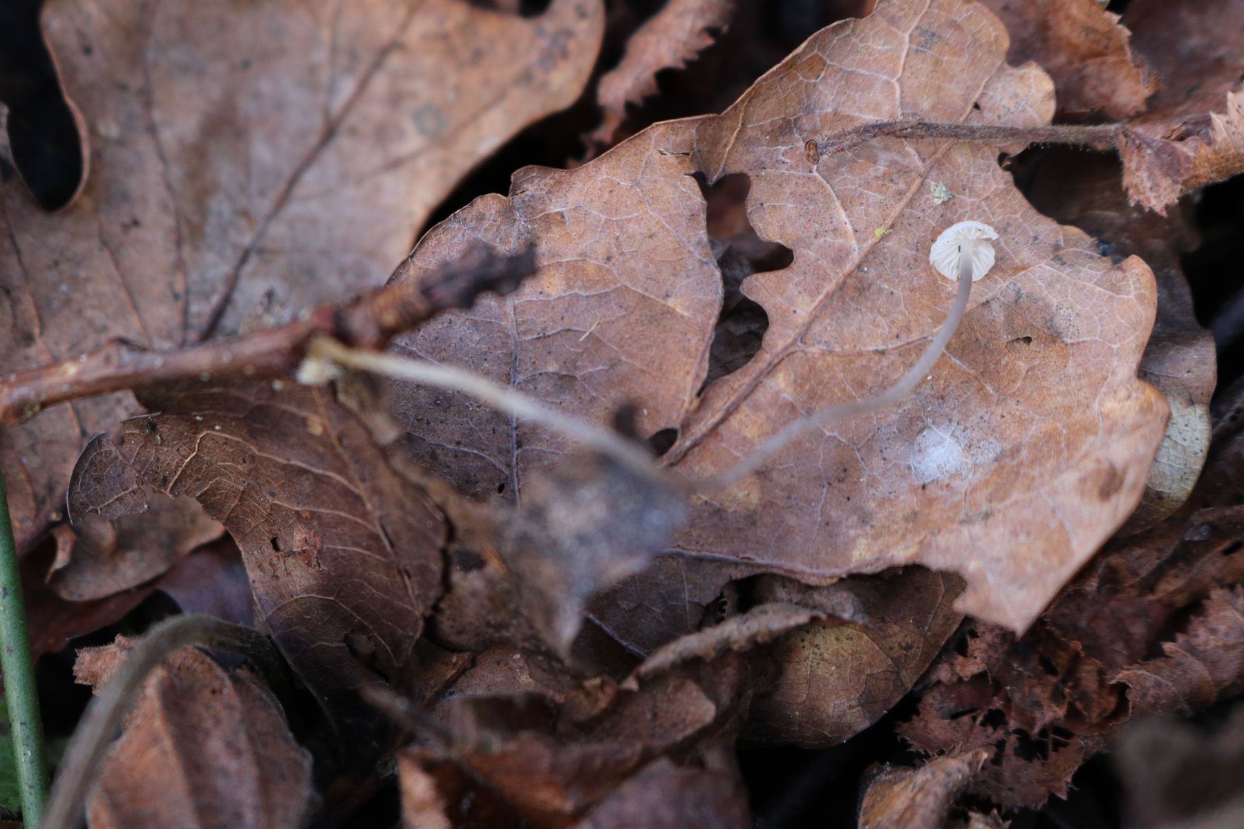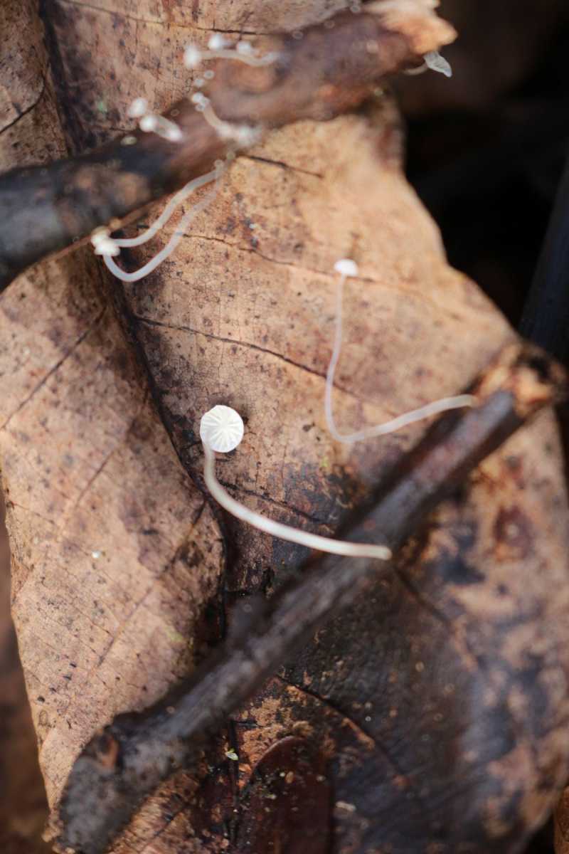 Die Lamellen stehen für mich entfernt. Das spricht laut Winkler für Marasmius. Dort gibt es aber nichts, was auch nur annähernd passen würde. Deshalb gehe ich gleich zu Mycena und den ähnlichen weiter.