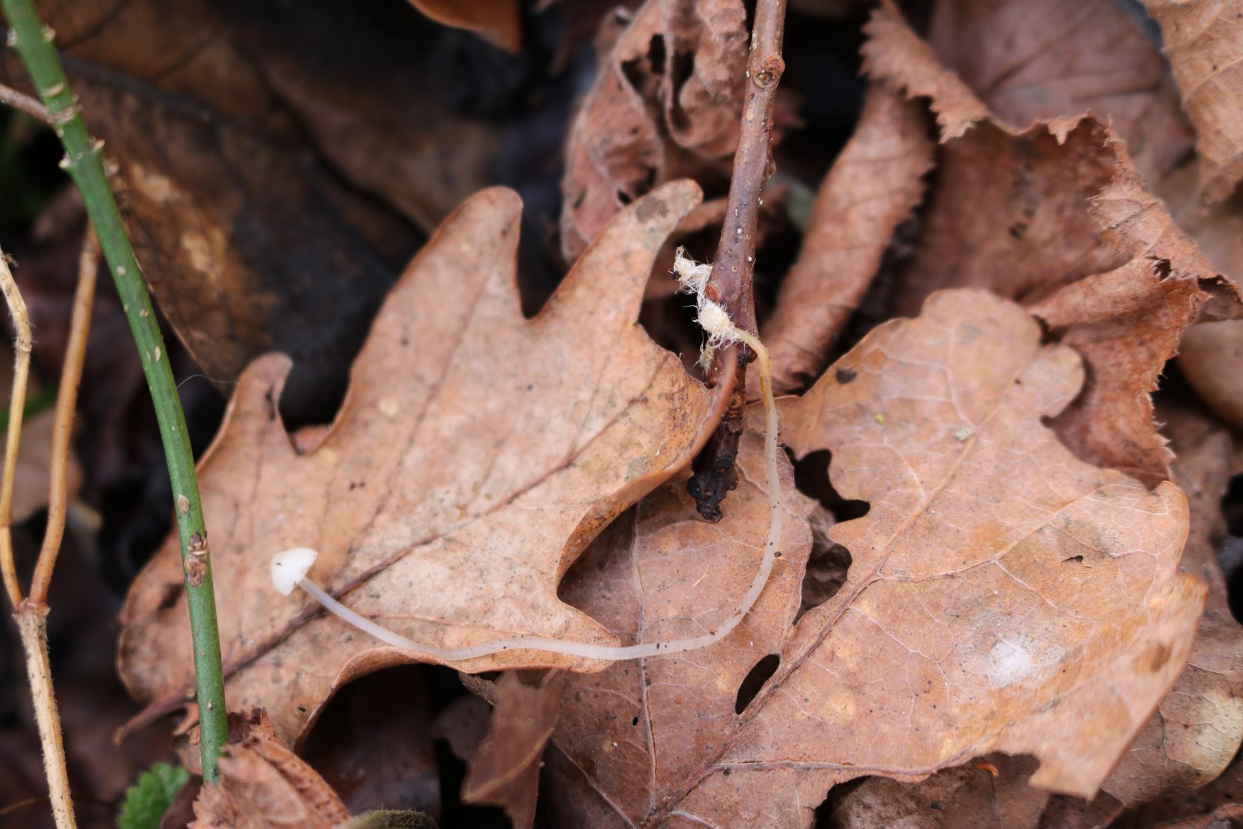 Stiel: im Vergleich zum Hut sehr lang (60 mm), fadenartig dünn