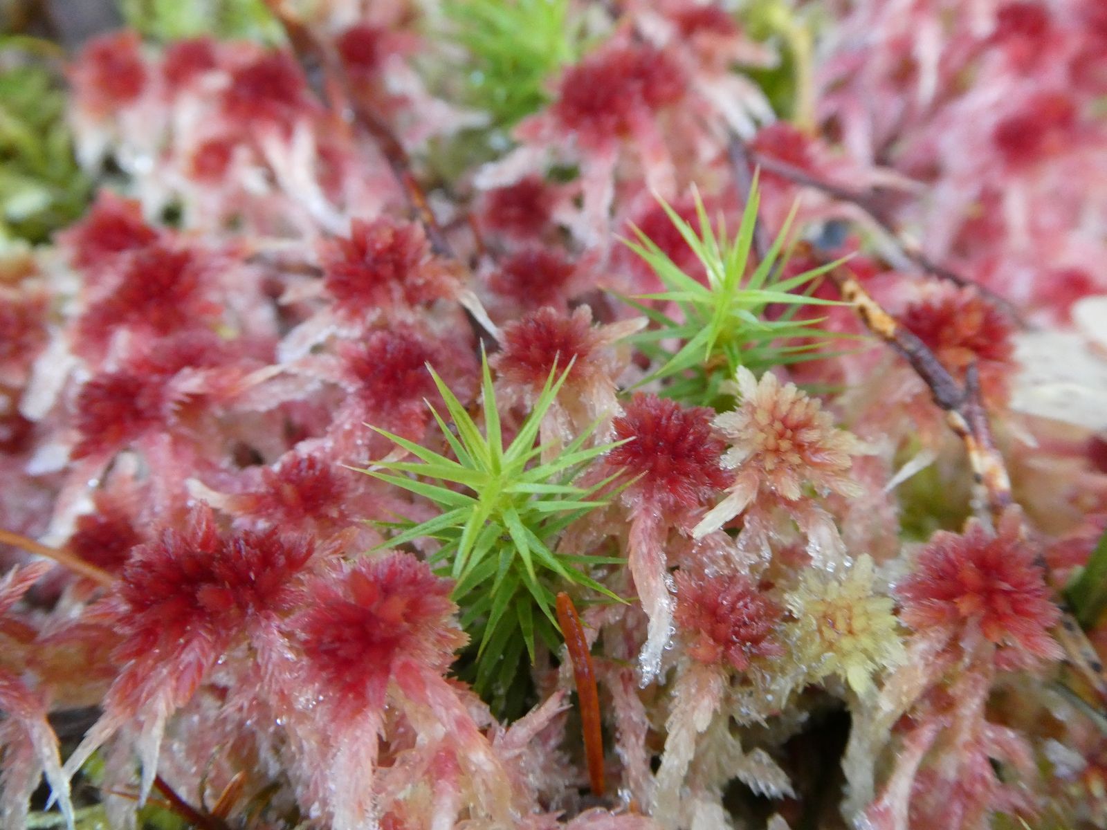 Bei Scheidegger fand ich Hinweis zu "meist schwach durch Vogelkot gedüngten Neigungsflächen", vielleicht färbt Vogelkot rot?