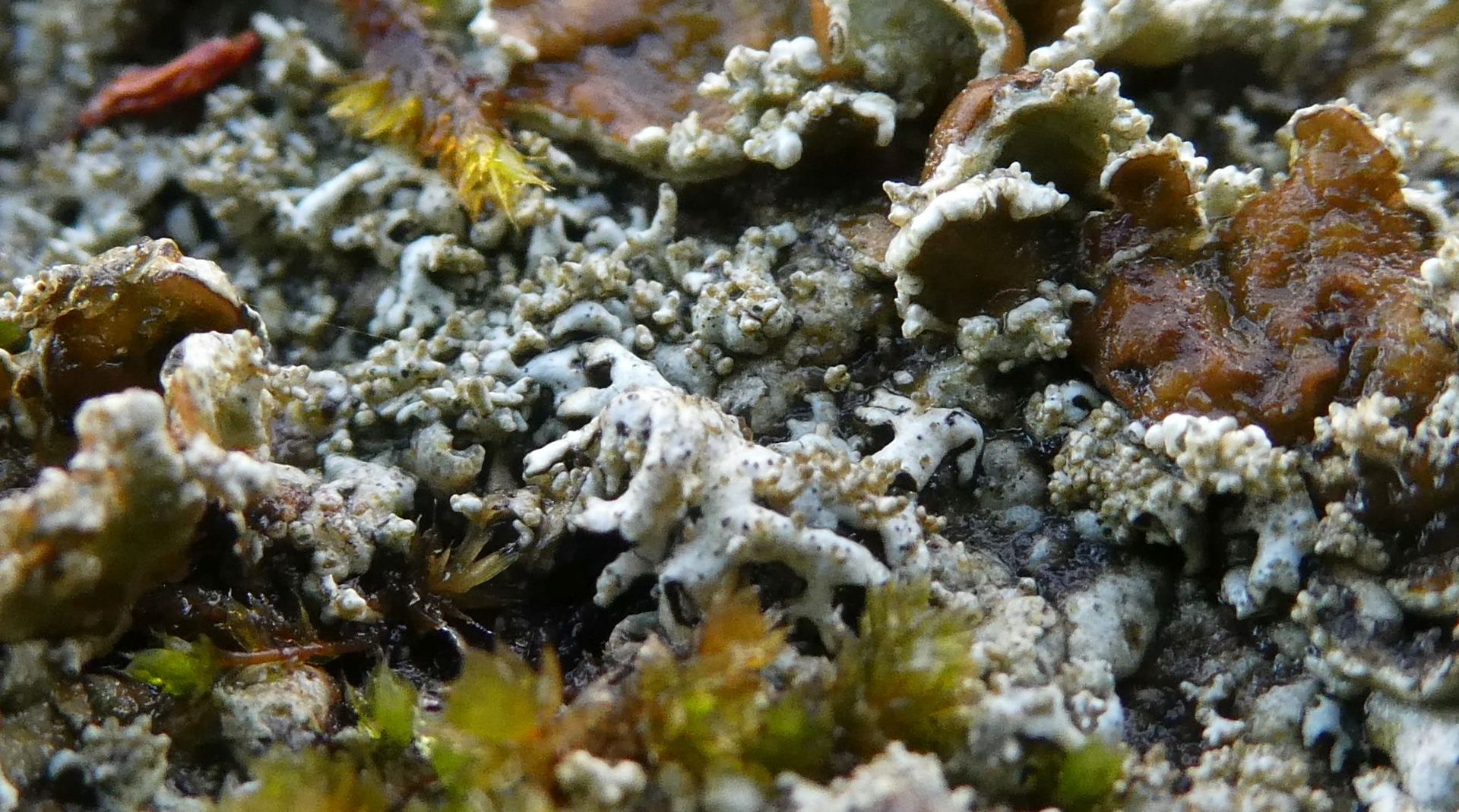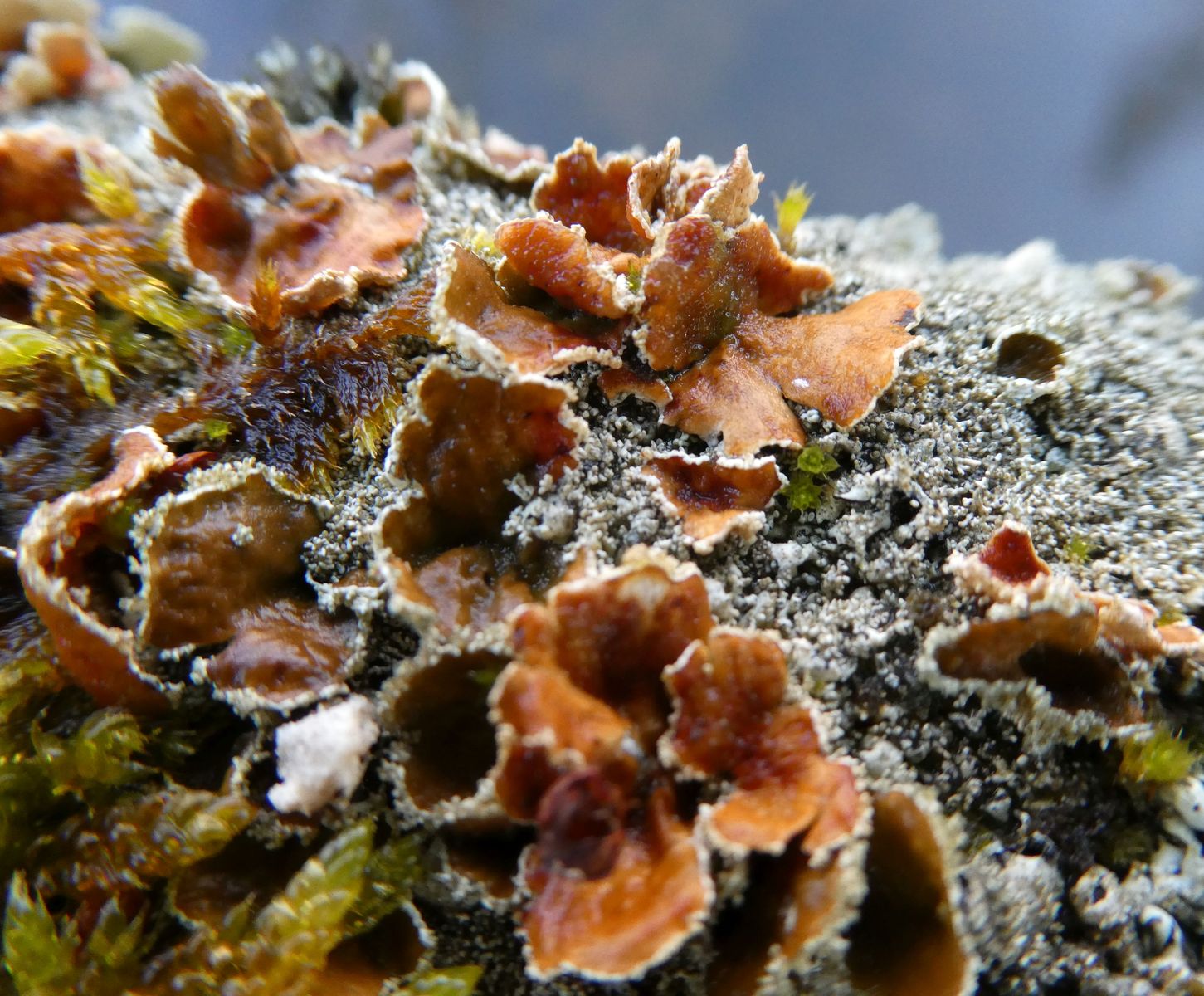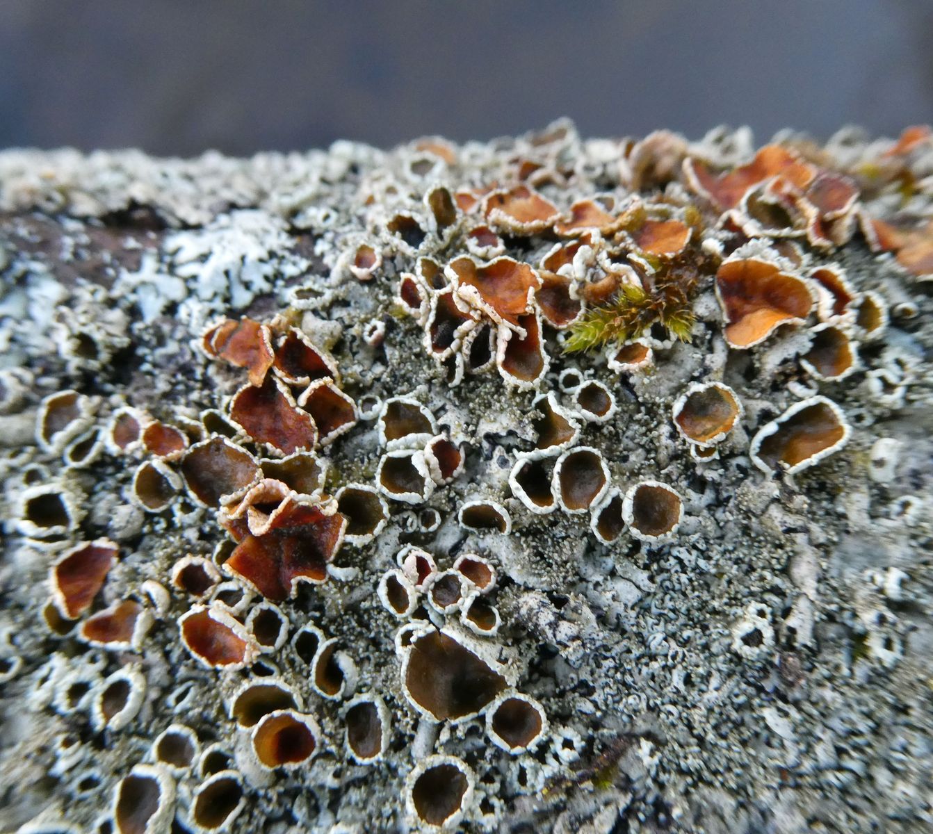 da die Ränder voller Isidien sind und drumherum alles voller kleiner Körnchen ist vermutete ich nun eine Flechte.