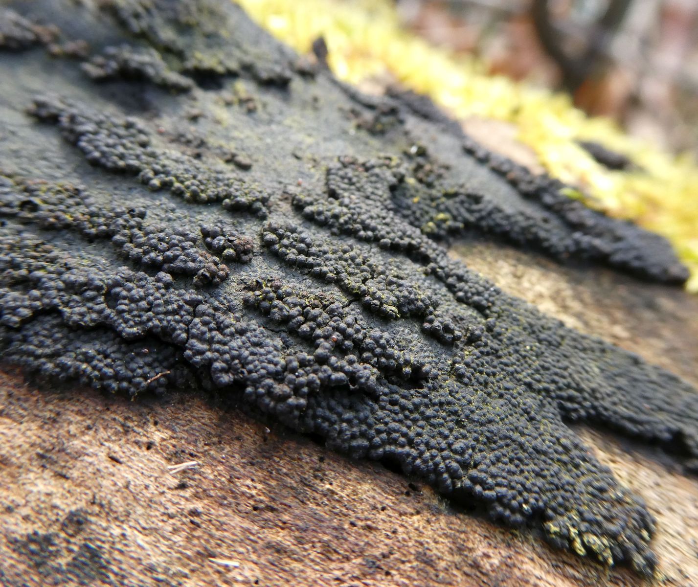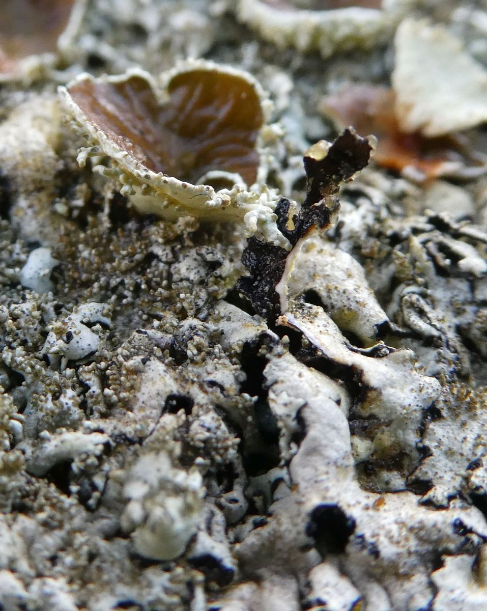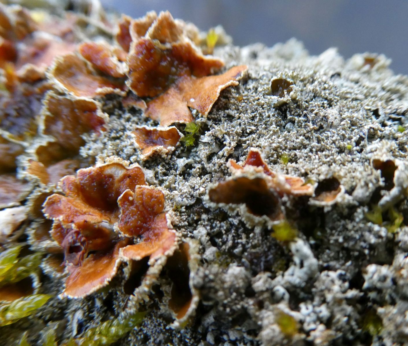 da die Ränder voller Isidien sind und drumherum alles voller kleiner Körnchen ist vermutete ich nun eine Flechte.