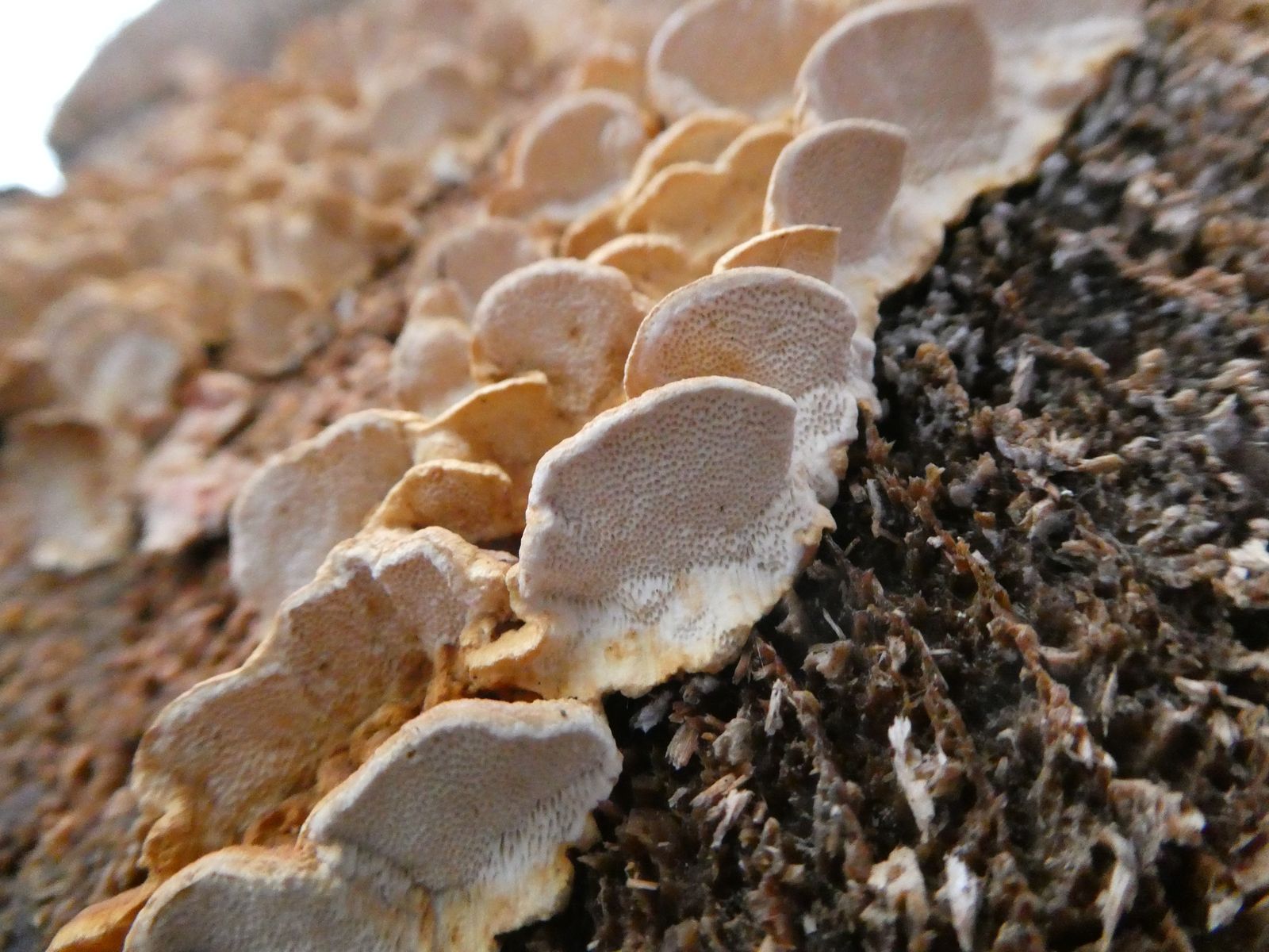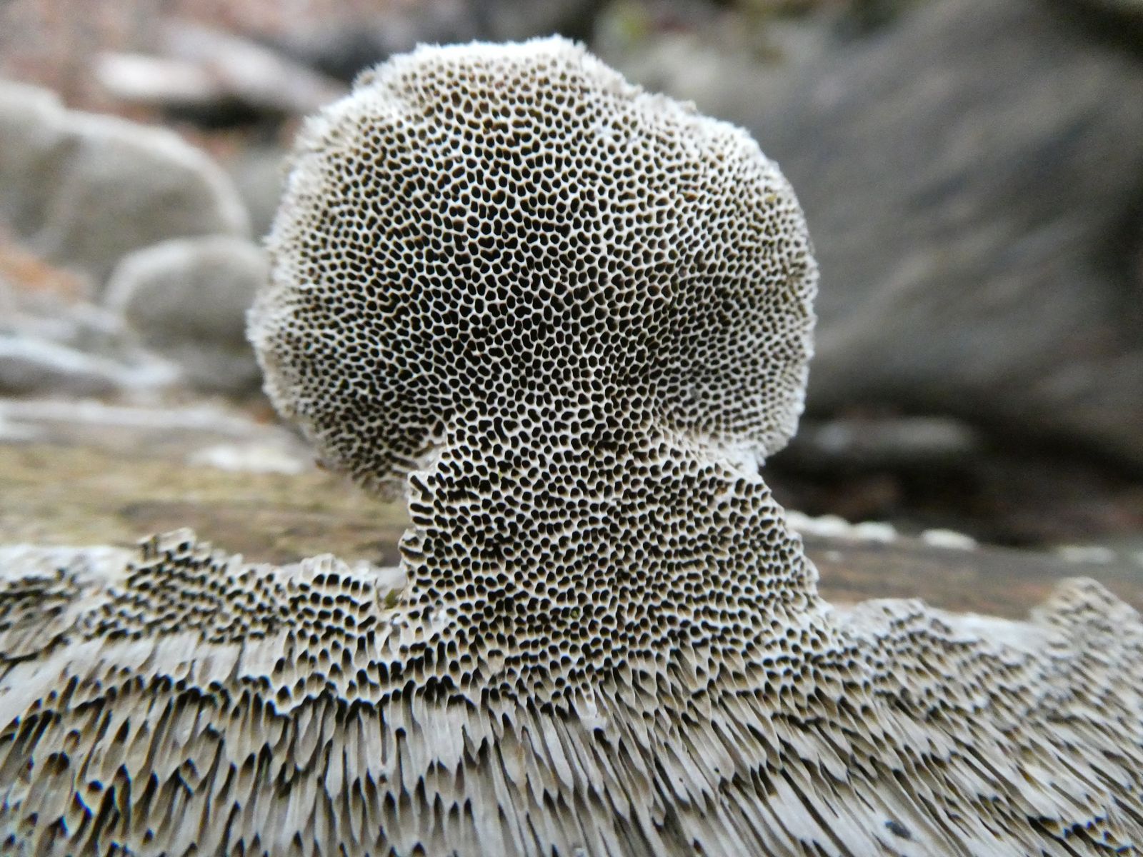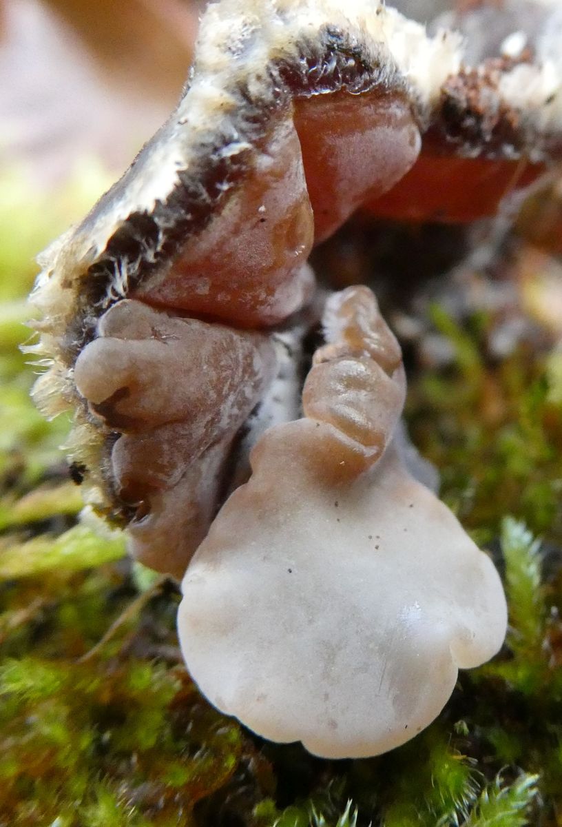 Keine Apothecien, Borten-Sorale, Unterseite filzig rein weiß ((Wirth: "oder(selten) ganz ohne Adern"))