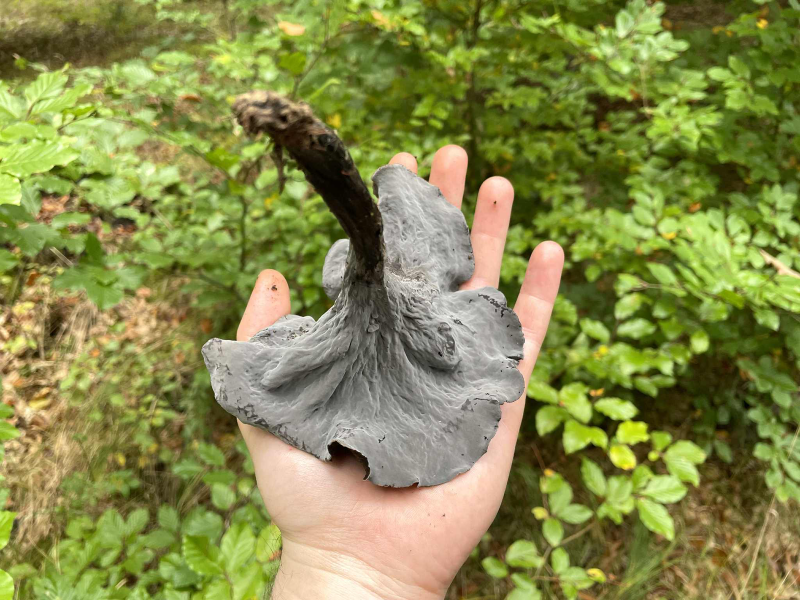 Weiterhin fanden sich für den Korb noch einige Herbsttrompeten und Lachsreizker. Mit den Arten geht es jetzt aber zu Ende. Der Regen und die Kälte der letzten Tage hat ihnen stark zugesetzt. Viel Brauchbares war hier nicht mehr zu finden.
