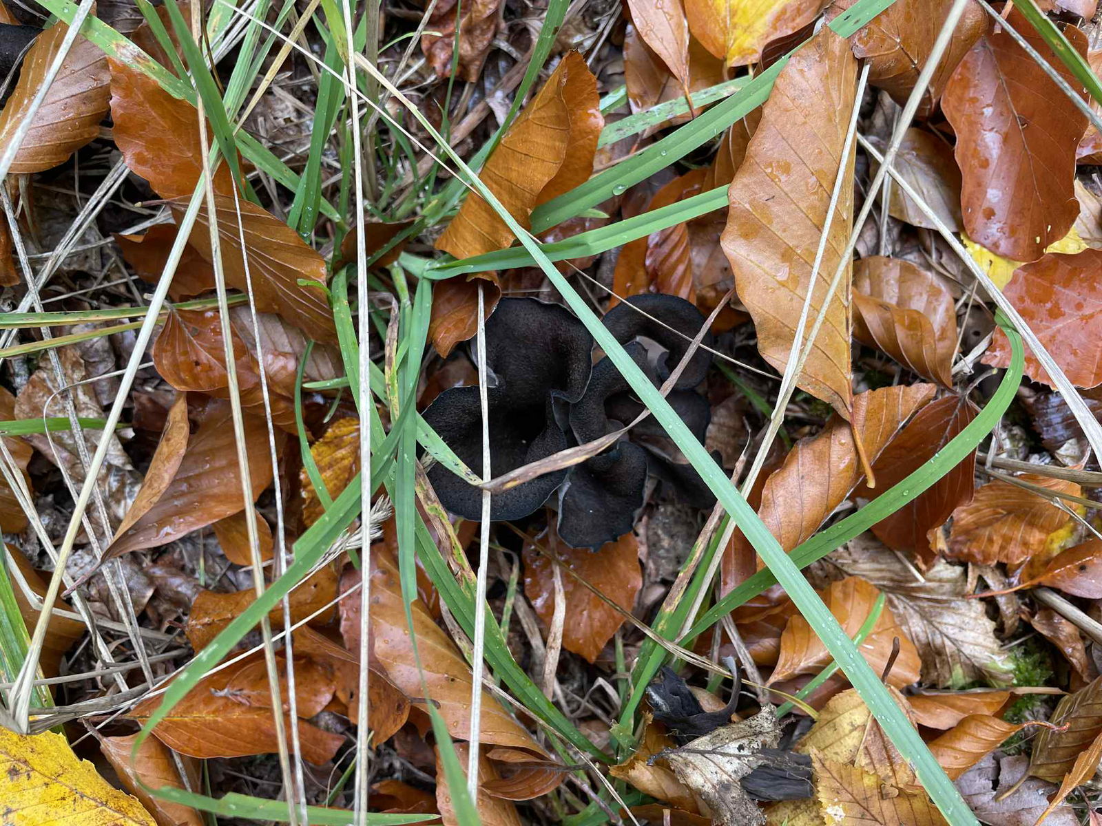 Weiterhin fanden sich für den Korb noch einige Herbsttrompeten und Lachsreizker. Mit den Arten geht es jetzt aber zu Ende. Der Regen und die Kälte der letzten Tage hat ihnen stark zugesetzt. Viel Brauchbares war hier nicht mehr zu finden.