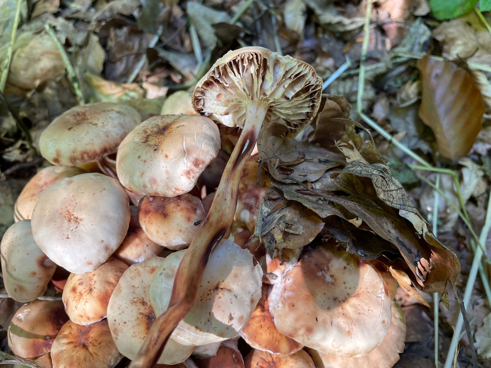 Hat schonmal jemand den Spindeligen Rübling in so einem Büschel gefunden? Ich nicht.