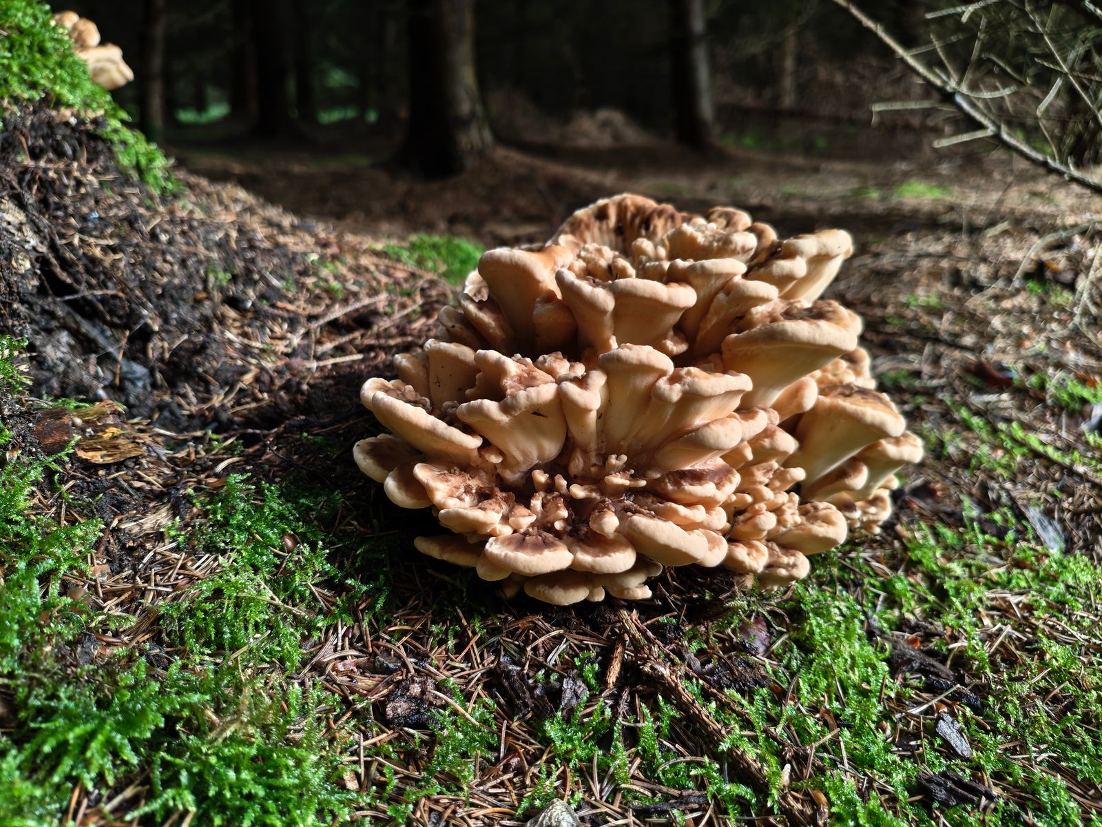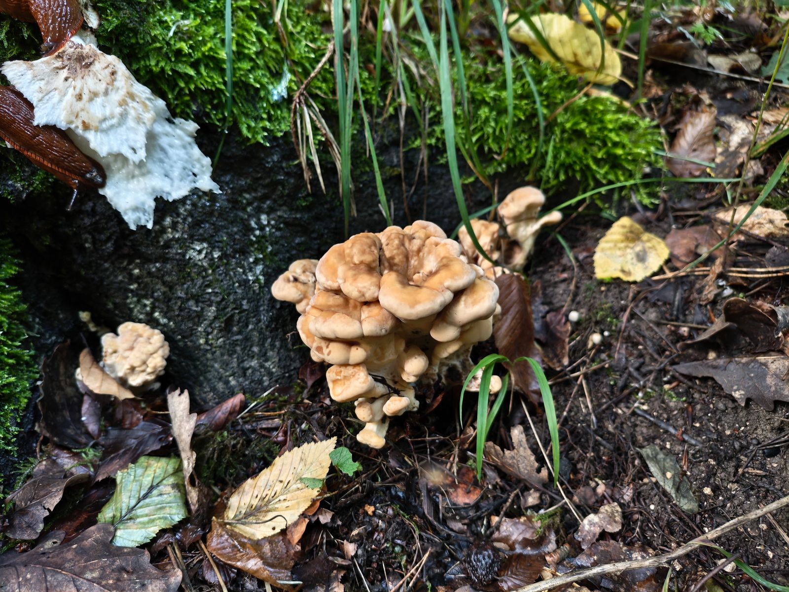An meiner Eichenflocki-Stelle hat sich in einer Woche Abwesenheit ein Feuerwerk abgespielt - trotz des vielen Regens. Insgesamt 12 riesige überständige Fruchtkörper, teils mit büscheligem Wachstum.