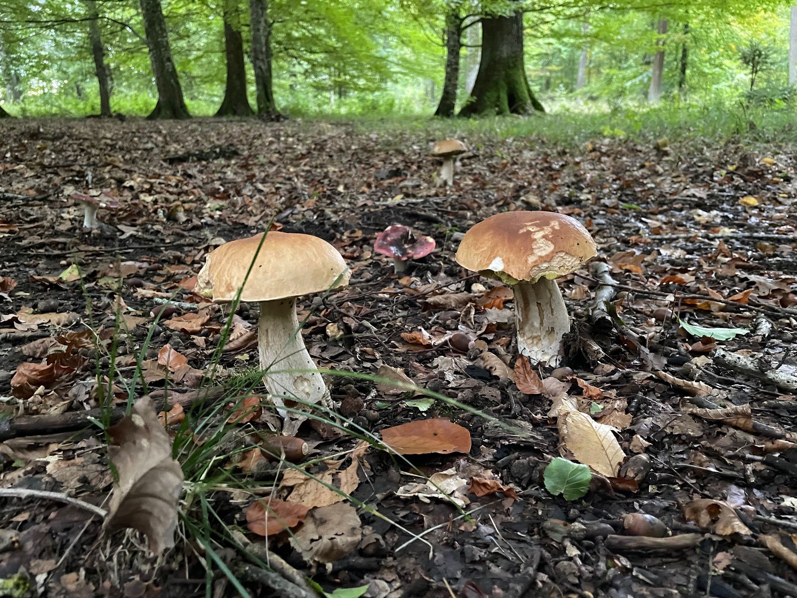 Heute war ich zu Fuß im Hauswald. Zumindest bei den so erreichbaren Fichtensteinpilz Stellen ist es jetzt vorbei. Von denen ist keine Spur mehr zu sehen. Wie es an den Sommersteinpilz Stellen aussieht, muss ich mal noch separat mit dem Rad schauen. Maronen sind auch keine mehr zu sehen. Pilzleer ist der Wald aber bei weitem nicht.