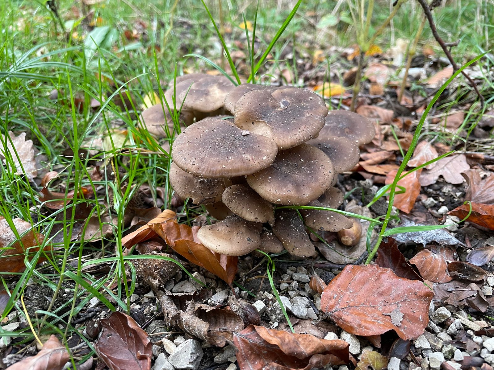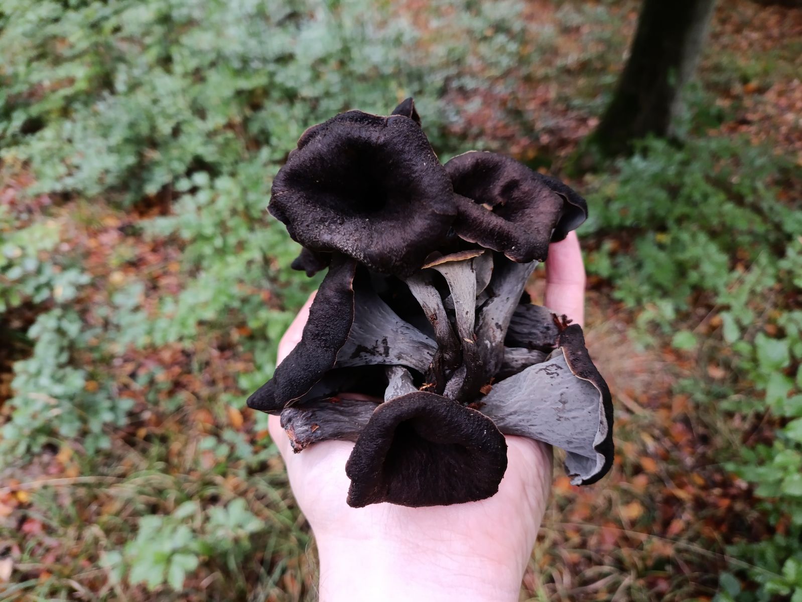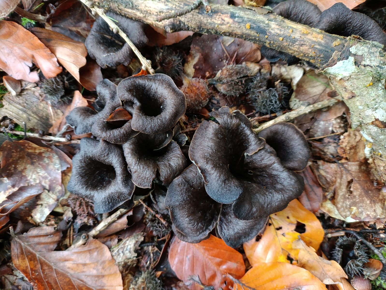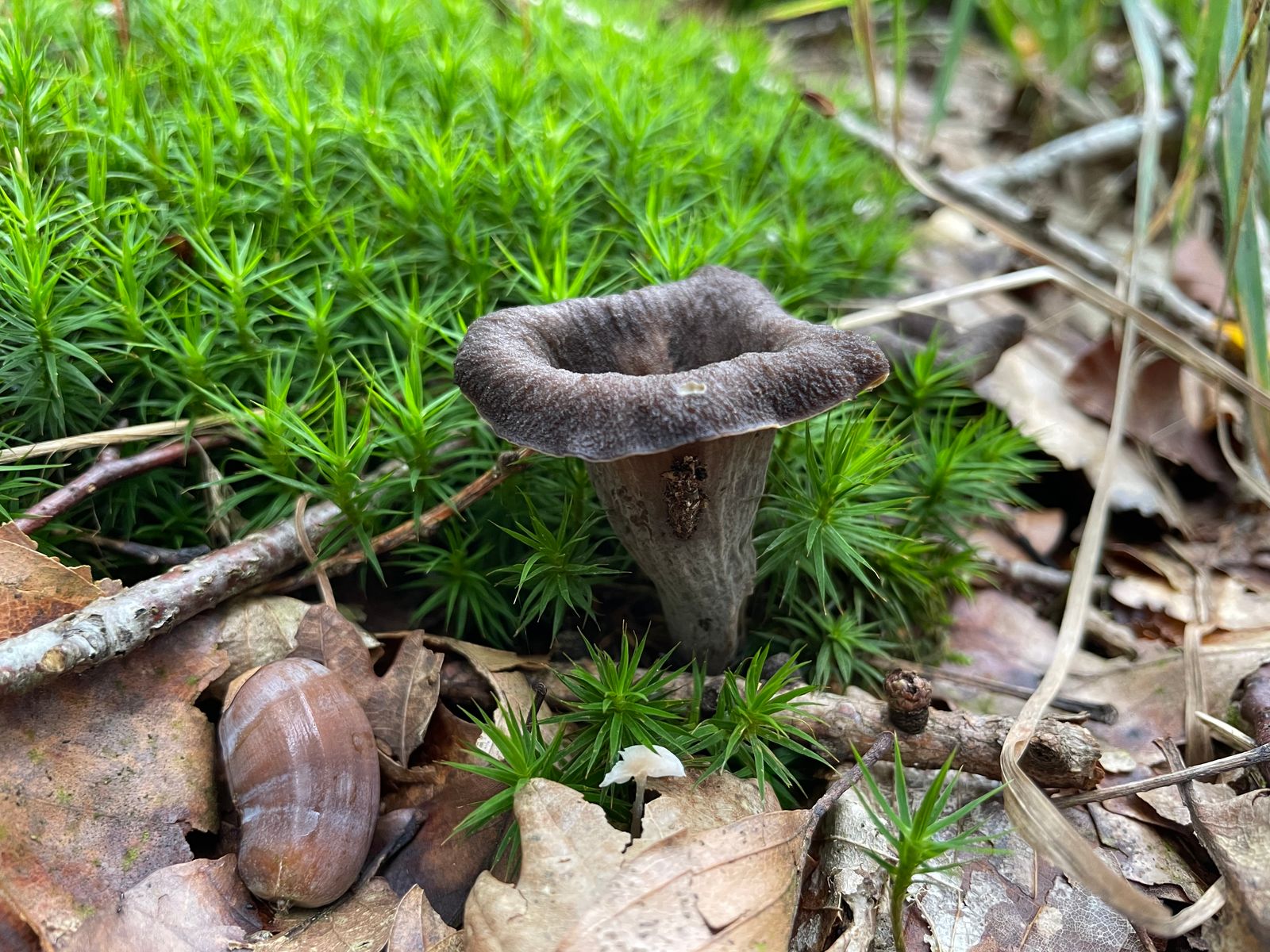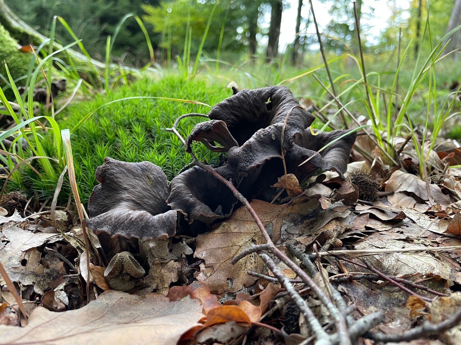 Ein neues Habitat der Herbsttrompete konnte ich finden. Auch dort phänomenales Massenwachstum mit richtig großen Fruchtkörpern. Da hab ich das Pilznetz nochmal ordentlich gefüllt. Die Art schieb auch weiterhin junge Fruchtkörper nach.