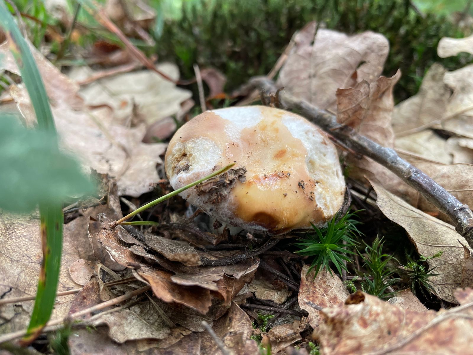 Die ersten Fichtenreizker lassen sich blicken. Leider schon in so jungem Stadium madig.