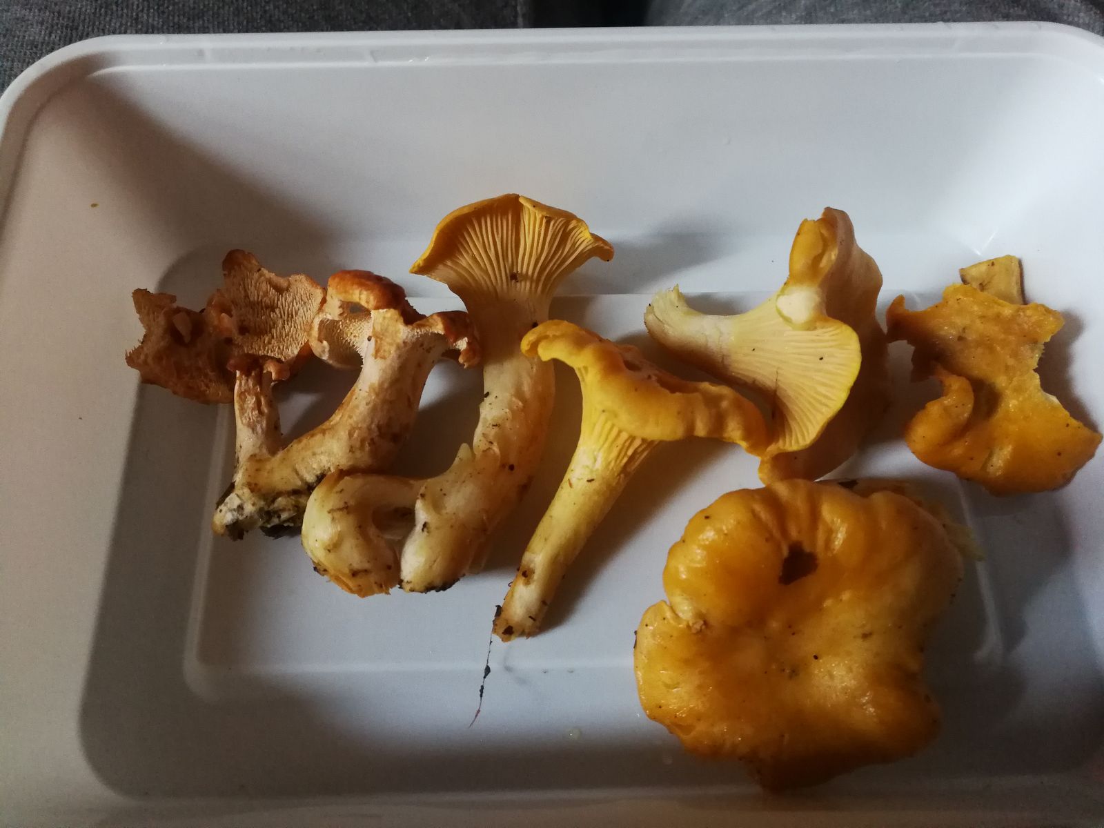 Die grauen Wulstlinge sprießen gerade extrem, kamen aber nicht mit. Die Perlpilze sind auch da, aber leider alle sehr madig.