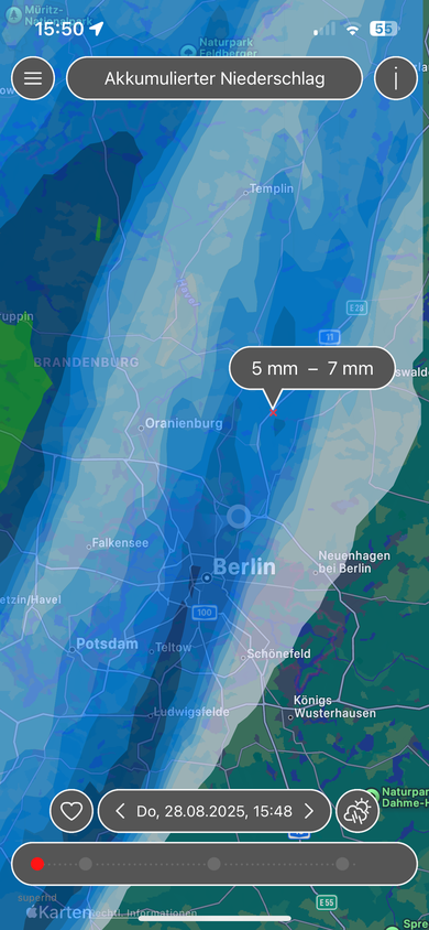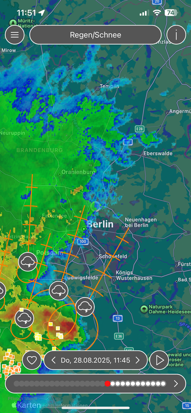 Ist in der Nacht alles westlich von Berlin vorbei gezogen. An der Küste ist in den frühen Morgenstunden ordentlich was runter gekommen. Hast das Glück des Tüchtigen!