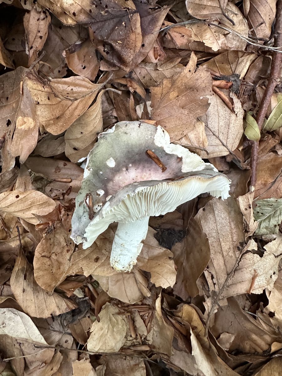 Sommersteinpilze konnte ich keine finden, die brauchen wahrscheinlich noch etwas Zeit für einen erneuten Schub. An einem Nordhang konnte ich aber gut getarnt einen Frauentäubling entdecken. Der muss schon vor den Niederschlägen gekommen sein, was ziemlich beeindruckend ist, weil es 3 Wochen nicht geregnet hatte. Im Laub bleibt die Feuchtigkeit halt auch im Hochsommer relativ lange erhalten.