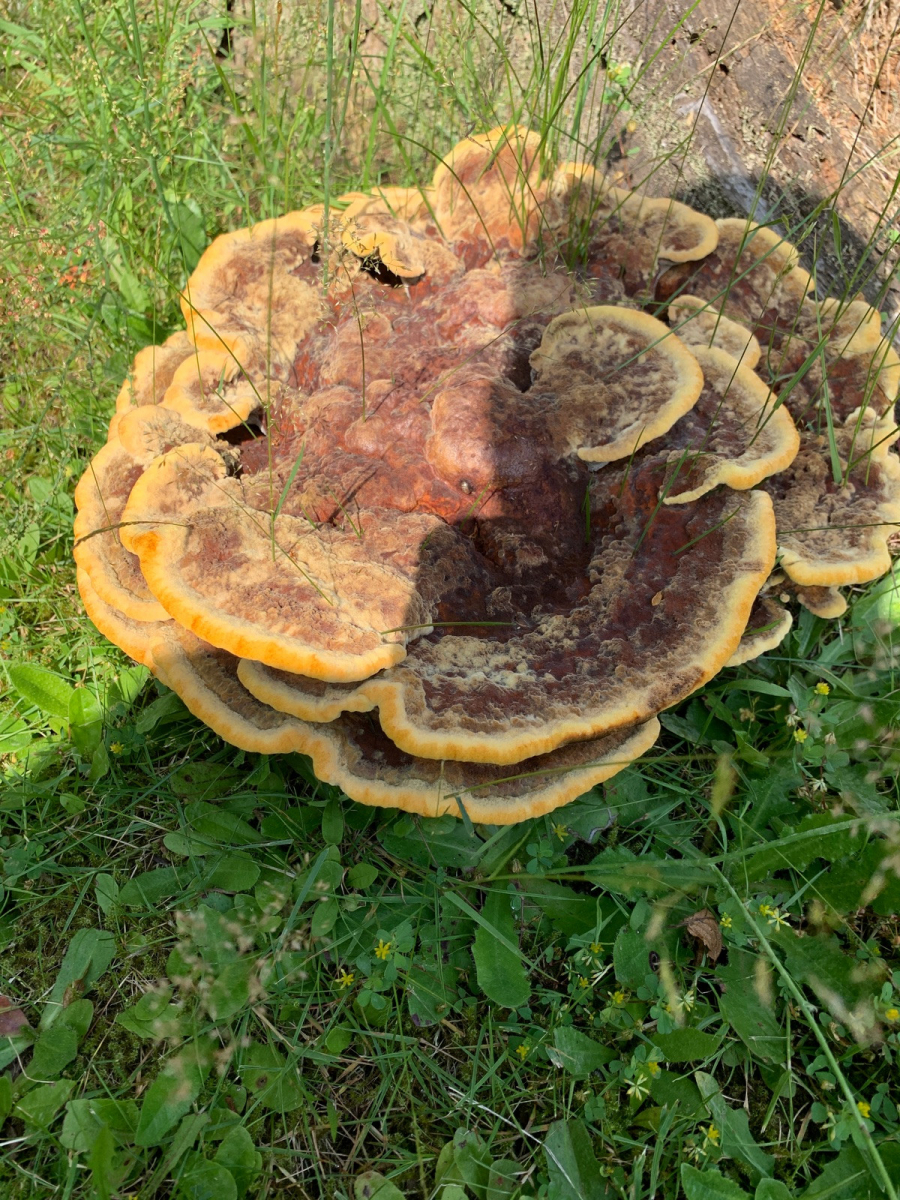 Bei mir im Garten am Fuße eine alten Baumstumpfes wächst ein kapitaler Pilz.