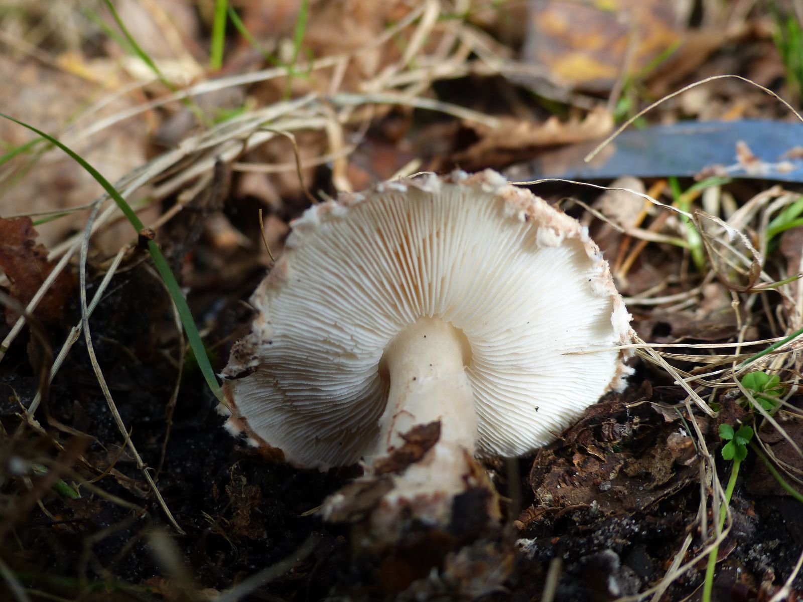 Er hatte seine Schwester dabei und lachte mich an. Da er selber aber sehr klein war, war seine Schwestern noch kleiner. Hut ist etwa 4 cm im Durchmesser. Und seine Größe betrug etwa 3 cm, wenn überhaupt. Der Hut ist eher weiß und hat braune Schuppen drauf. Also: mal wieder Haare waschen. Der Rand des Hutes hat kleine Fetzen dran, die runterhingen. Die Lamellen sind weiß und untermischt. Der Stiel ist auch weiß. Nun der Geruch: sehr übel. So chemisch. Also nix für Muttis Tochter.