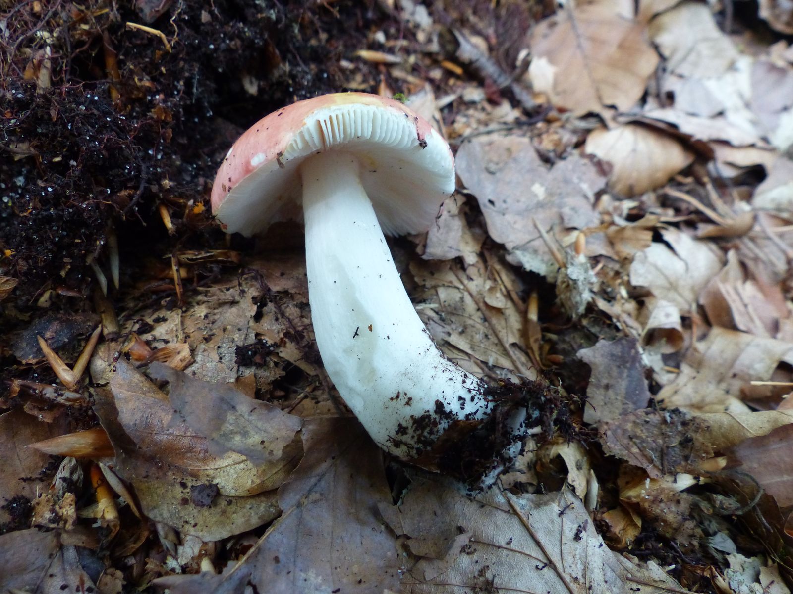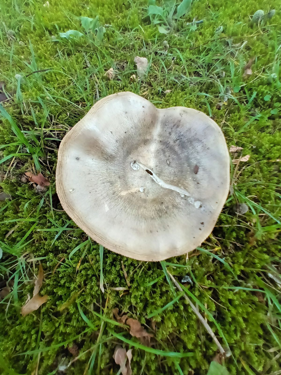 Ein breitblättriger Weißtäubling, weil die Lamellen recht weit auseinander stehen. Er hat in der Mitte eine recht tiefe Grube und wuchs recht nah an einem Laubbaum.
