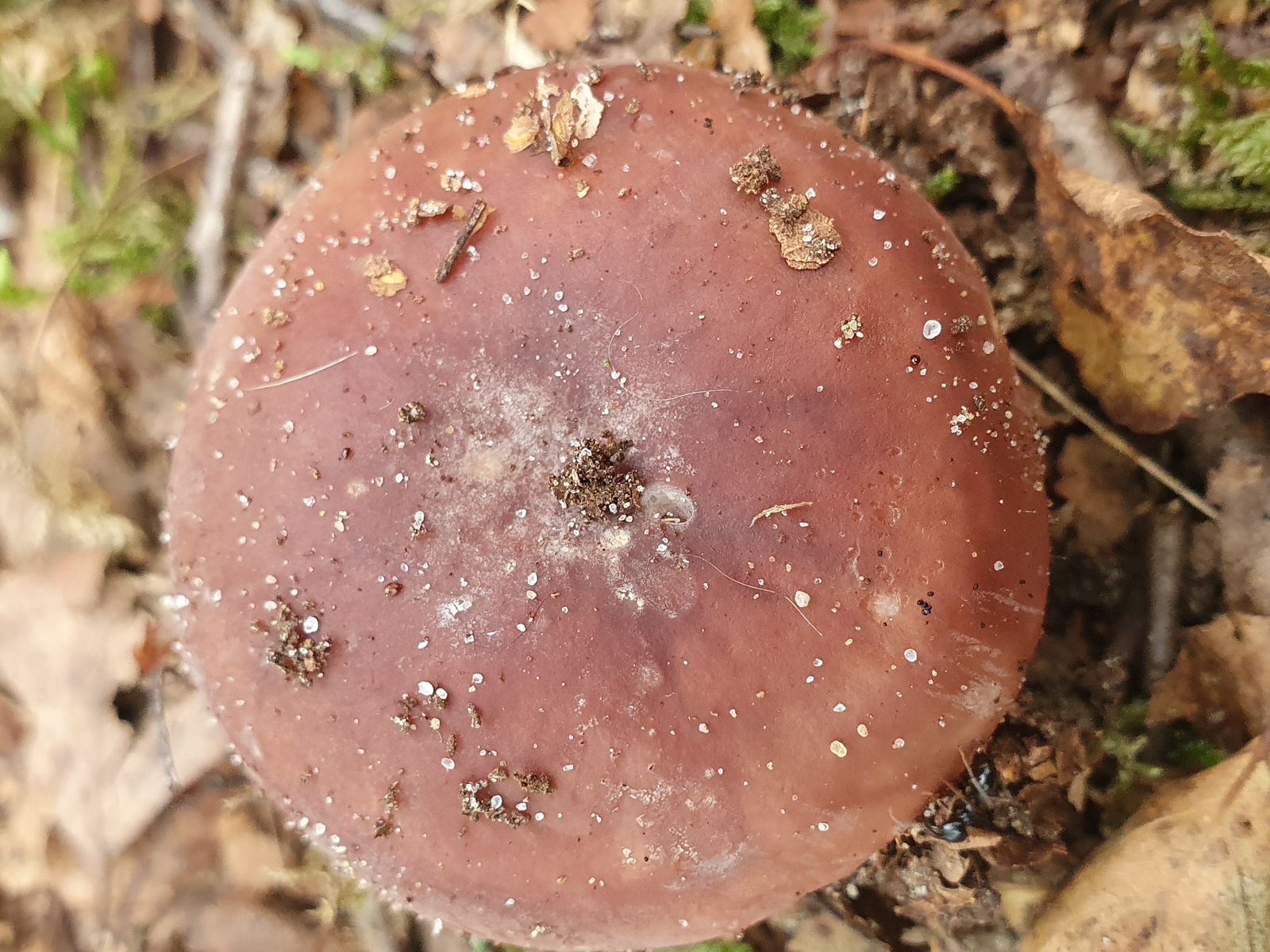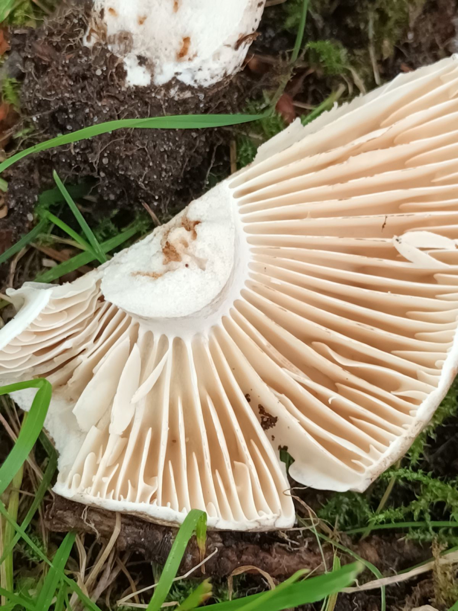 Ein Frauentäubling. Weil die Lamellen speckig und biegsam sind. Es ist ein älteres Modell, deshalb ging die Huthaut auch nicht ganz so leicht abzuziehen. Er wuchs auf einer Wiese im sauren Boden.