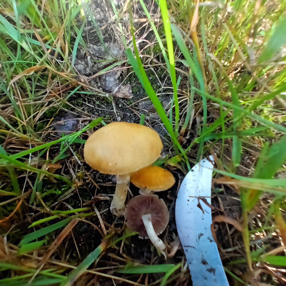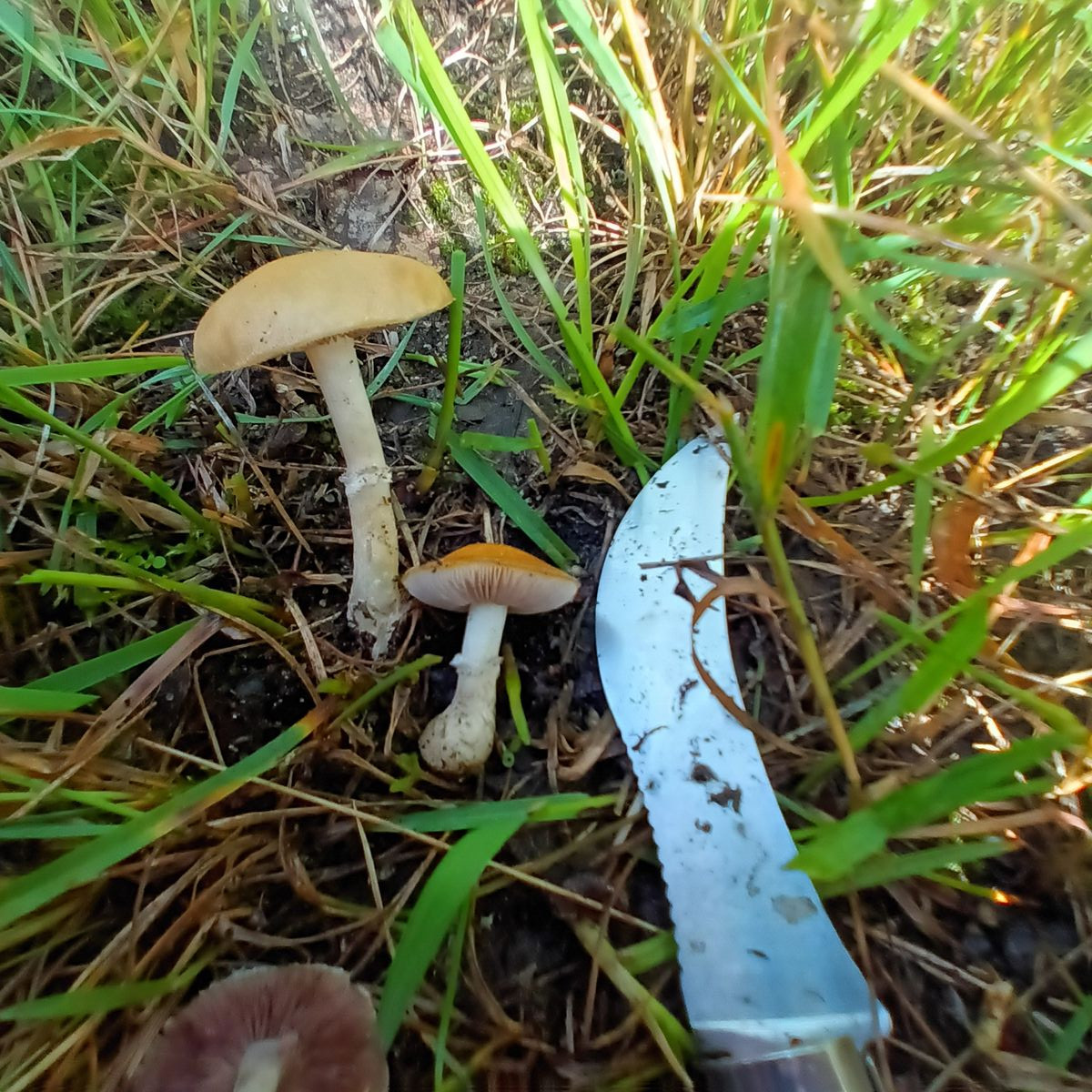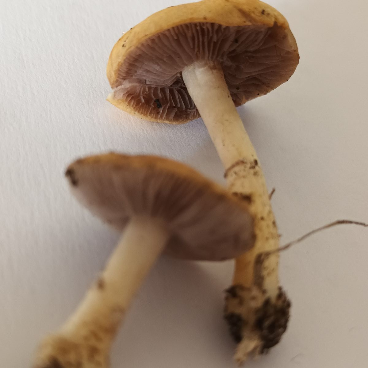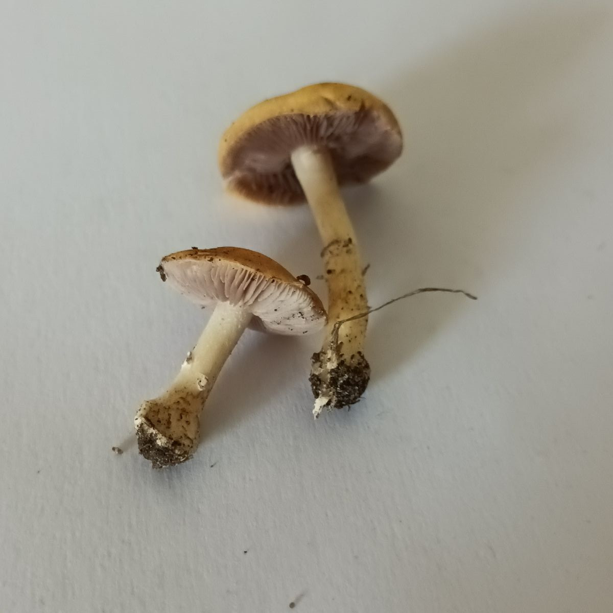 Farben: Stiel cremefarben, Hut ein wenig dunkler cremefarben, jung mehr ins gelbliche gehend. Höhe des gesamten Pilzes etwa 5 cm.