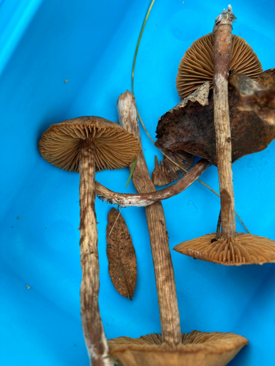 Die Hüte waren hygrophan und eher radialstreifig, zudem gebuckelt, Max 2-3cm groß. An den Huträndern helle Areale. Die hellbraunen Lamellen hatten nur teilweise sowas wie Velumreste (?). Die Stiele waren alle silbrig überfasert. Als gegürteltes Velum hätte ich das eigentlich nicht bezeichnet. Sporenpulver dunkelbraun. Geruch unspezifisch. Könnt ihr die grob einordnen? Häublinge? Kleine Cortinarien? Irgendwelche x-schnitzlinge? Mikroskop wäre vermutlich hilfreich aber leider kann ich das noch nicht. Ich wäre dankbar schon für Ideen!