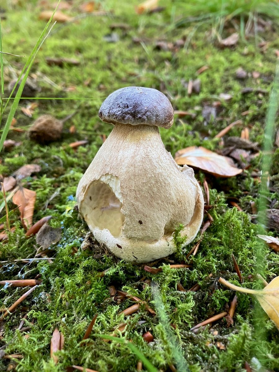 Hutfarbe durchgängig lederbraun so wie im Bild 2 am Rand ersichtlich. Der Stiel war gleich so und hat sich nicht verändert. Selbes Habitat wo sonst die „normalen“ erythropus stehen, alte Rotbuchen.