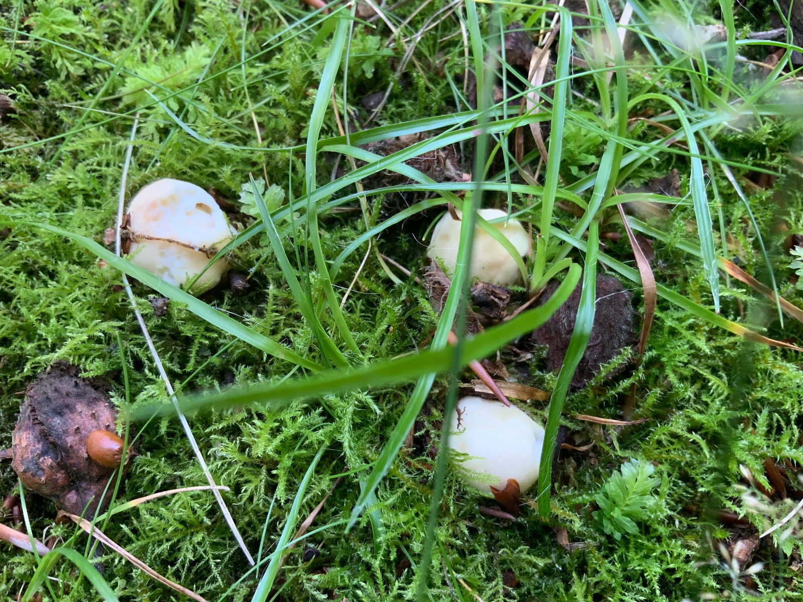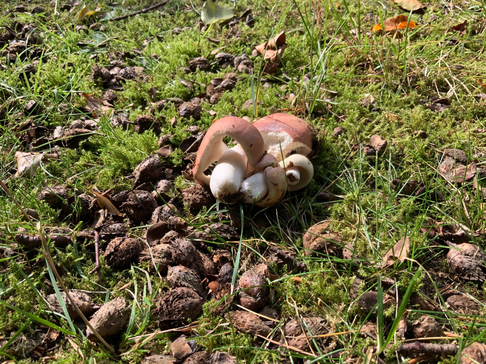 Im Parkgelände zeigen sich ganz kleine Fleischrote Speisetäublinge: