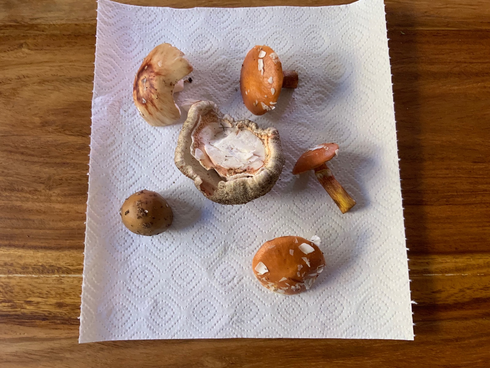 Sommersteinpilze und Flockenhexen schon weit drüber und dann fast verbrannt…und das noch vor der richtigen Hitze. Von oben noch gut aussehende Maronen total vertrocknet. Perlpilze, tja die sind immer noch brauchbar am Start. Und ein paar Goldröhrlinge.