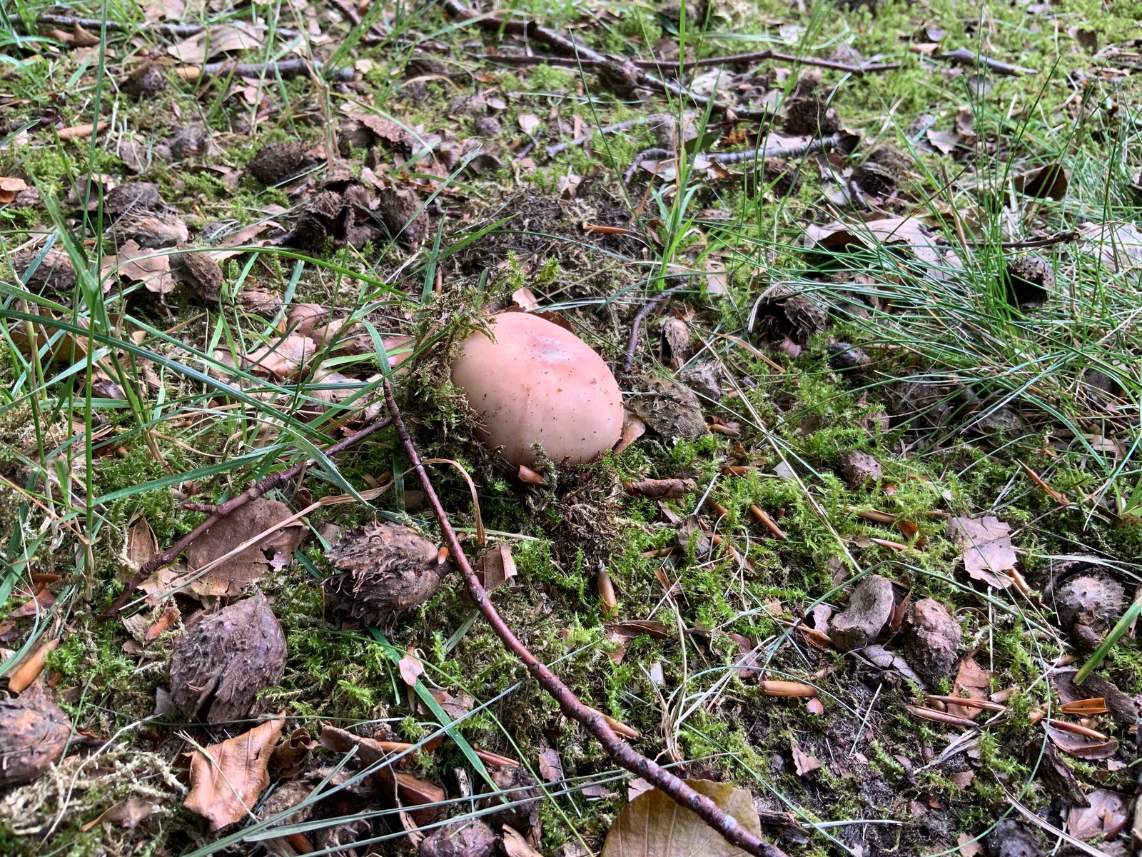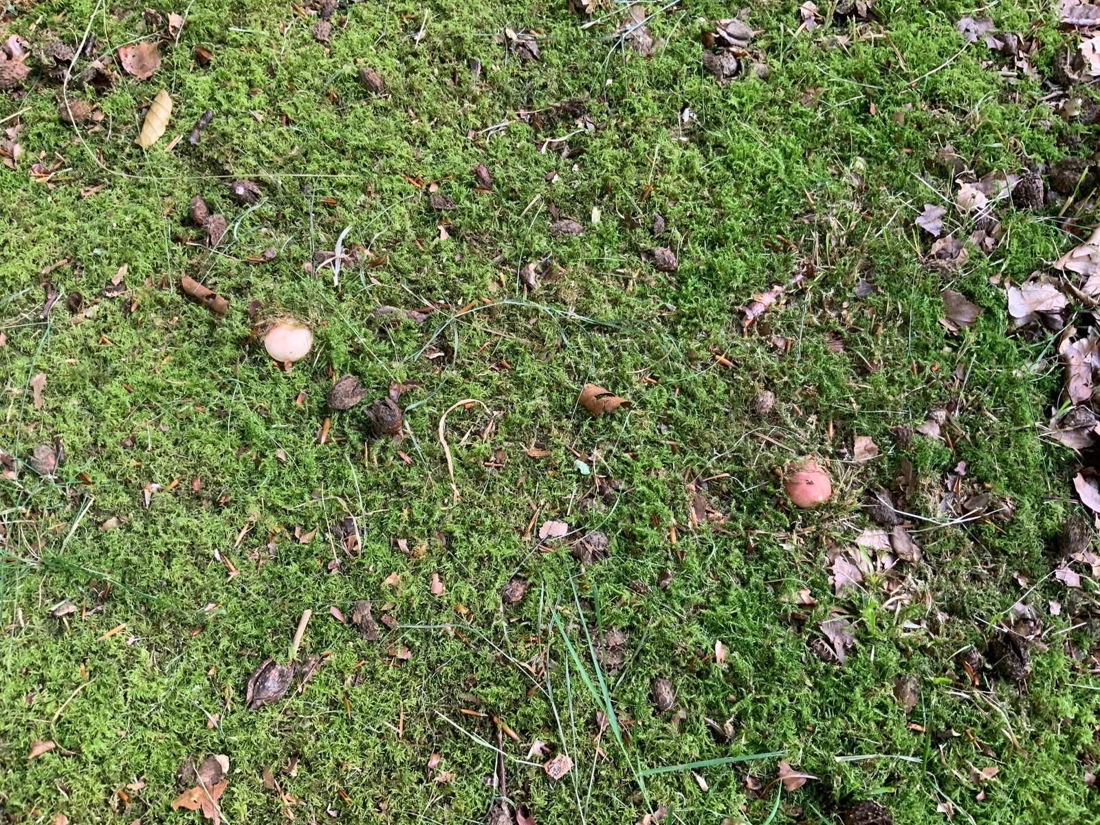 In jener mit gutem Schutz von oben an wirklichen Frischpilzen noch das hier (viele weitere kleine, vermutlich Zedernholztäublinge/ hatte ich an der Stelle im letzten Jahr bereits probiert = hullescharf, also keine Heringe, waren sehr versteckt im leicht feuchten Gras zu sehen):