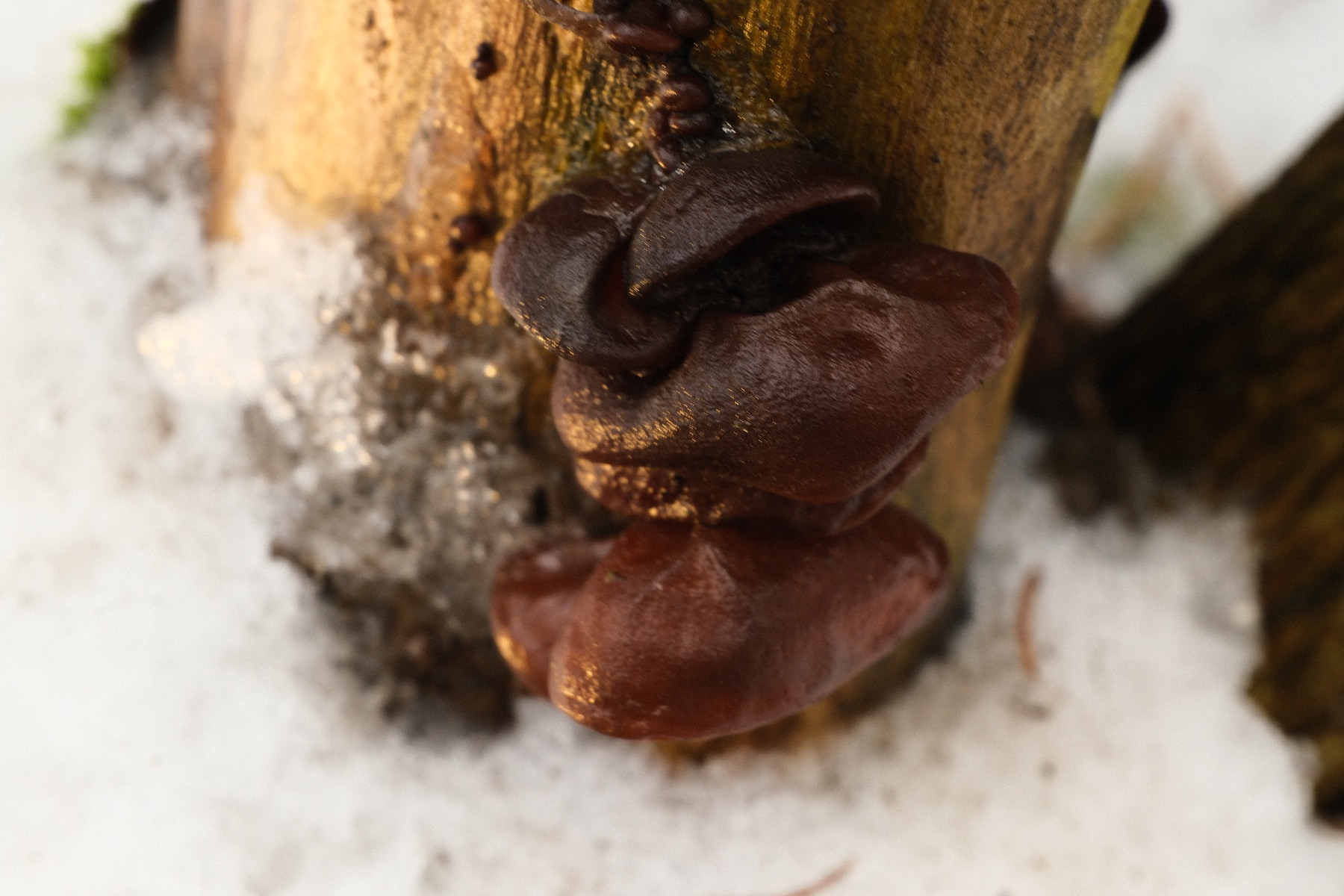 Die Stelle im Fichtenforst, die vor zwei Jahren so ab Mitte März Rüblinge und Helmlinge in Hülle und Fülle brachte, ist natürlich längst nicht so weit. Aber wie bereits erwähnt, hier oben kommt eh alles 10-14 Tage später…
