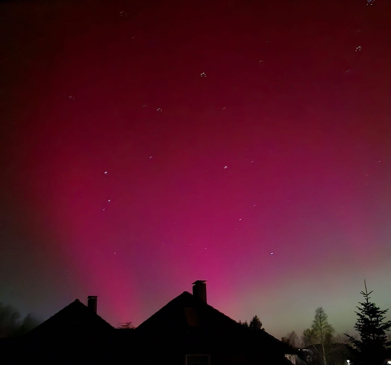Dass die Farben so gut rauskommen, liegt wahrscheinlich an der kaum vorhanden Lichtverschmutzung am Nordrand eines Dorfes ein paar Kilometer außerhalb der Stadt. Da ist es nachts stockdunkel, weil auch insbesondere gen Norden nichts entgegenwirkt.