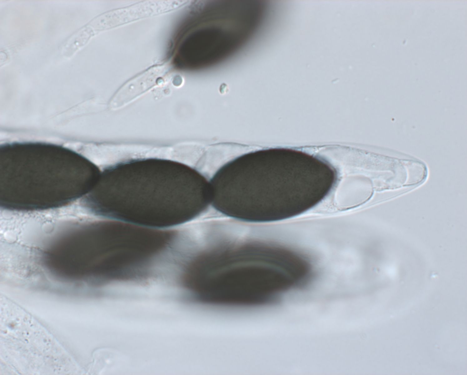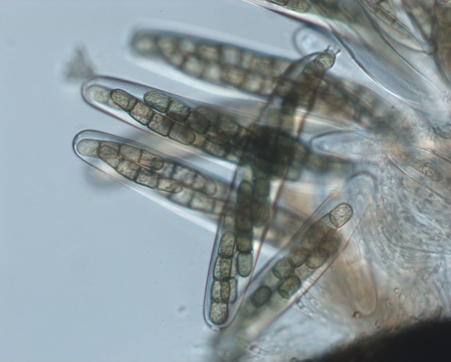 reife Sporen mit Rissen, unreife Sporen hyalin und (aus meiner Sicht) noch ohne Risse