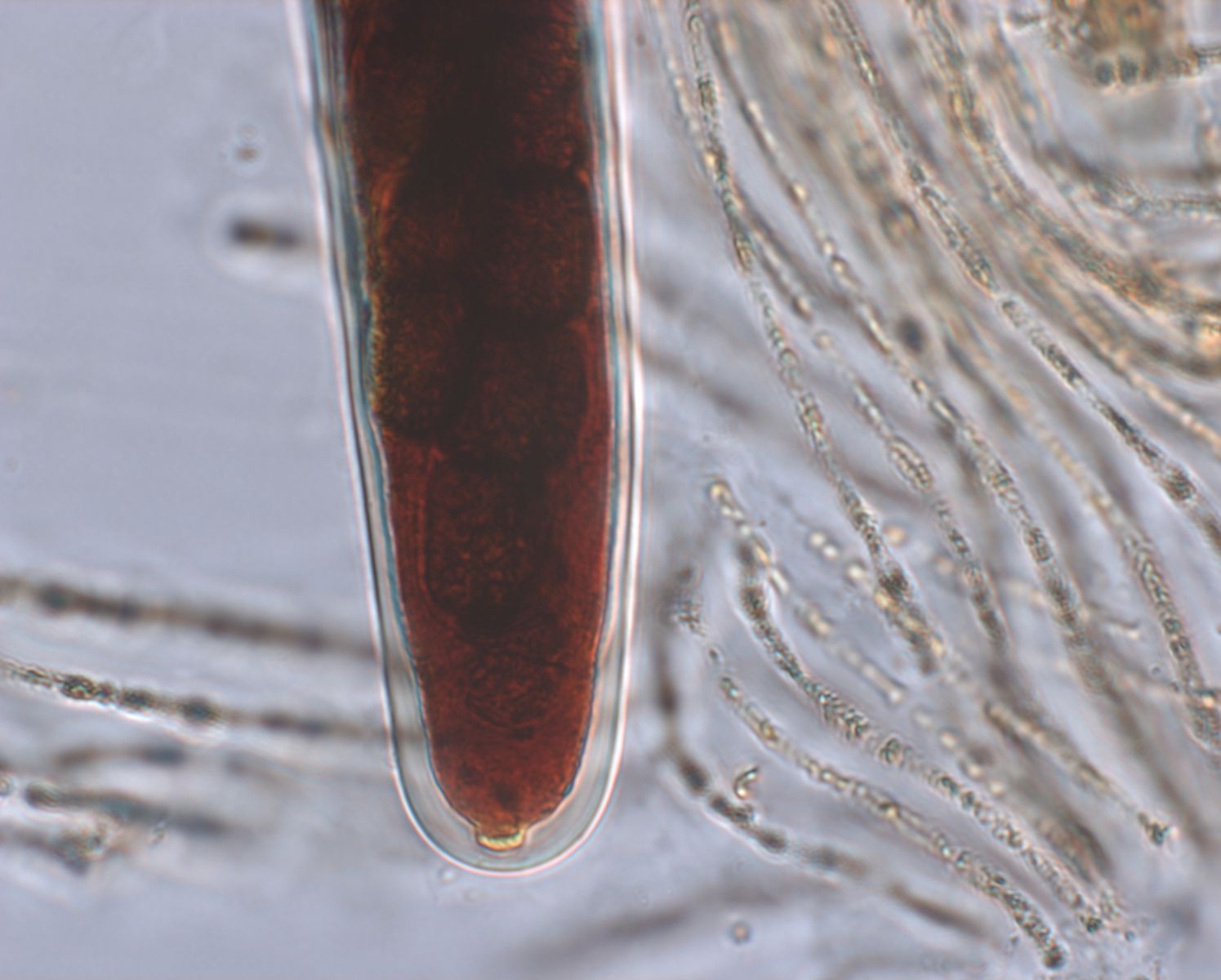Mit meinem Bestimmungsbuch von Doveri bin ich zu Arnium arizonense gekommen... aber wie gesagt, unsicher weil der Fruchtkörper eben nicht so aussieht. Bei Podospora australis war ich auch nicht sicher, wegen fehlender Basalzelle, oder vielleicht habe ich sie einfach nicht mitdokumentiert. Leider auch keine Anhängsel auf meinen Bildern zu sehen. Ist mein allererster Dungpilz gewesen, den ich mir mikroskopisch angesehen und Fotos gemacht habe. Wusste noch nicht, worauf man alles achten sollte ![]()