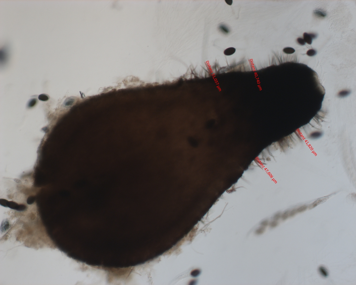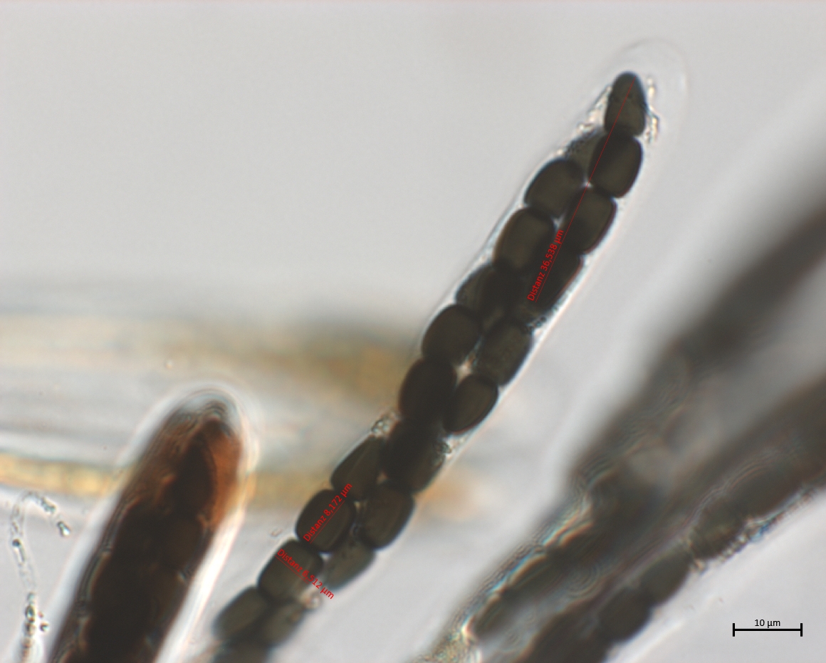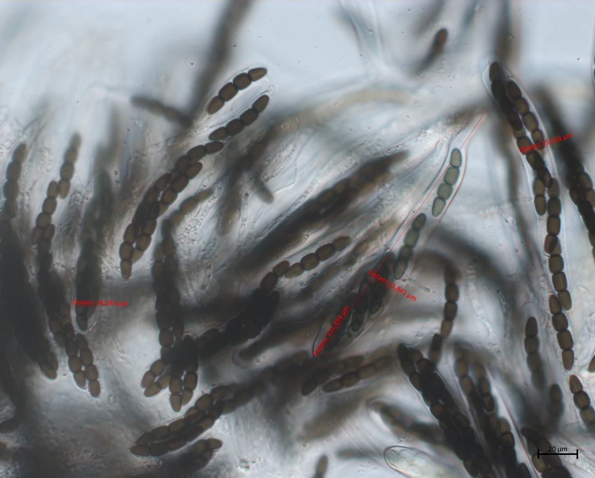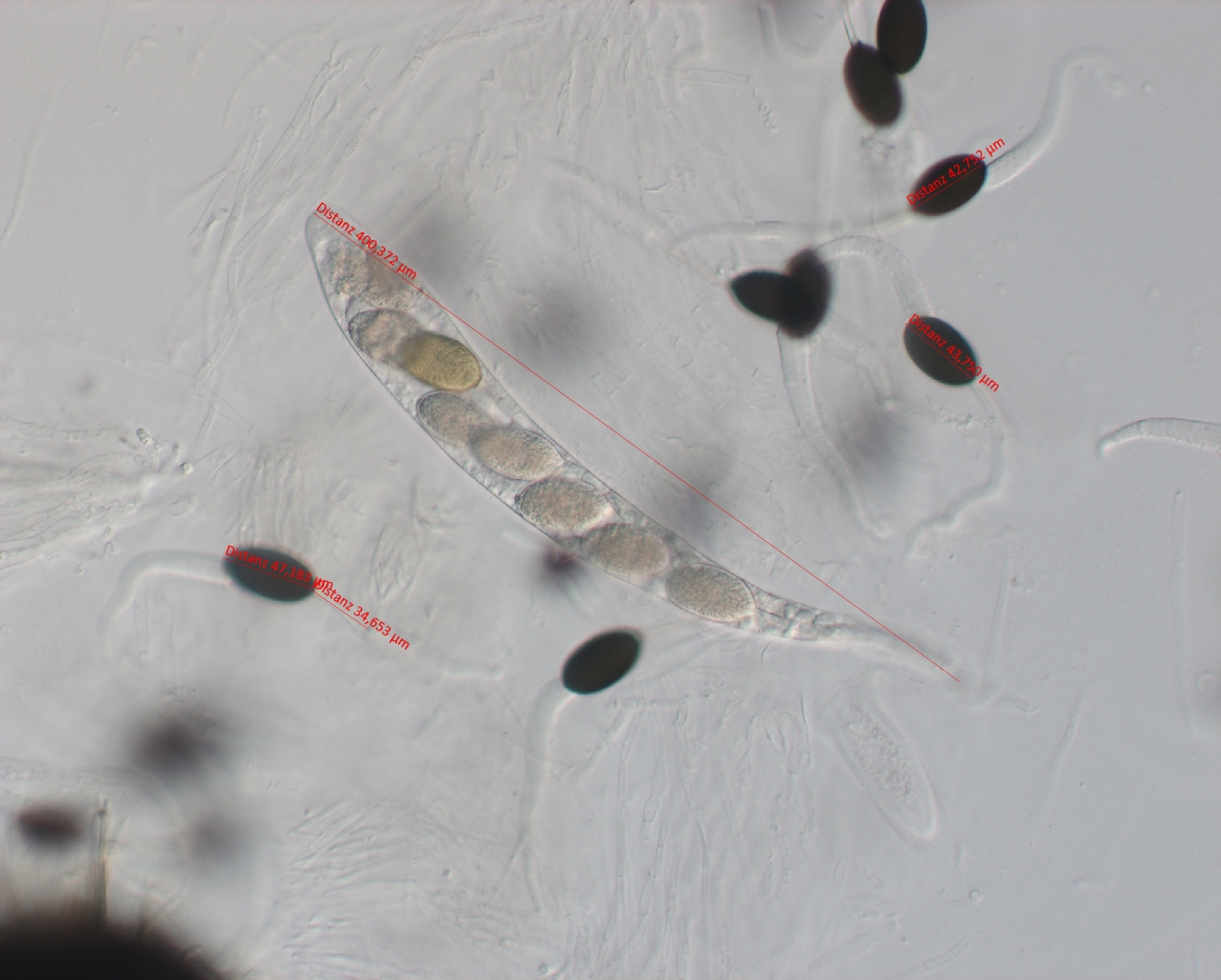 Habe hier einen Podospora auf Pferdedung, glaube es ist P. fimiseda, bin mir aber unsicher, weil die Sporen, Pedicel und Asci teilweise ein bisschen zu klein sind. Oder gibt es da eine größere Toleranzgrenze, als im Doveri zu P. fimiseda angegeben?