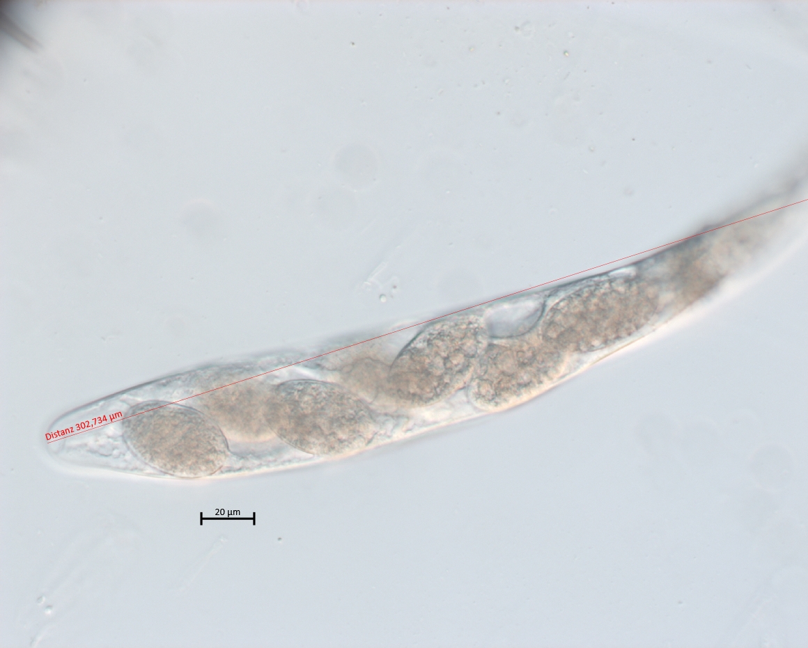 Ascusgröße: ~152 x 14-18 Mikrometer