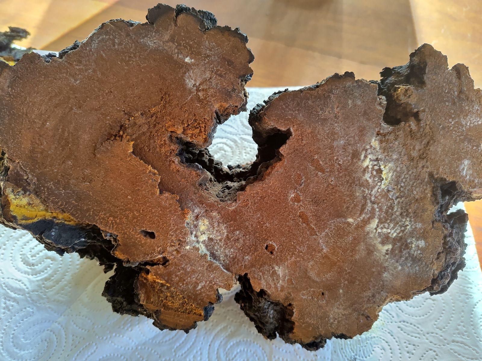 Alles anzeigenHeute wollte ich mich damit beschäftigen und musste feststellen, dass der Pilz an der Schnittkante eine Art Schimmel oder auch Myzel gebildet hat.
