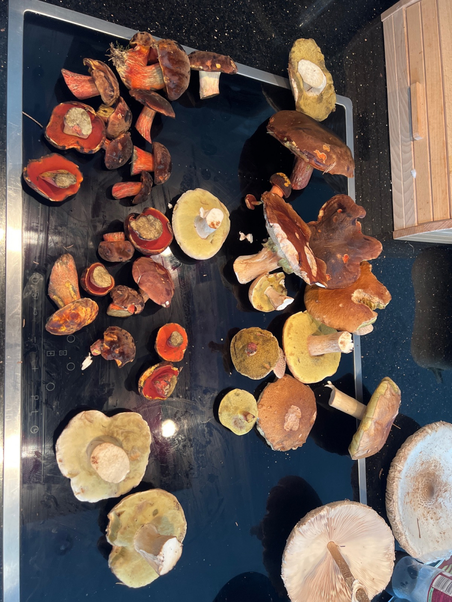 Auch noch wichtig ist der Schimmel bei Pilzen. Schimmel führt gerne mal zu einer Lebensmittelvergiftung. Man sollte wissen daß man ihn nicht unbedingt sehen muß. Er kann trotzdem vorhanden sein. Bei alten Pilzen ist das immer wieder mal der Fall und sehr anfällig für Schimmel sind auch die Rotfüße/Filzröhrlinge. Das erwähne ich weil ich bei dir welche sehe.