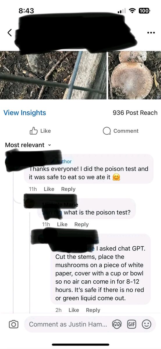 Aber mir scheint, dass man da eine interessant angelernte KI benötigt, um so einen "Gifttest" präsentiert zu bekommen. Sowohl ChatGPT als auch die Google-KI spucken mir, befragt nach "mushroom poison test", nur einigermaßen sinnvolle Antworten aus.