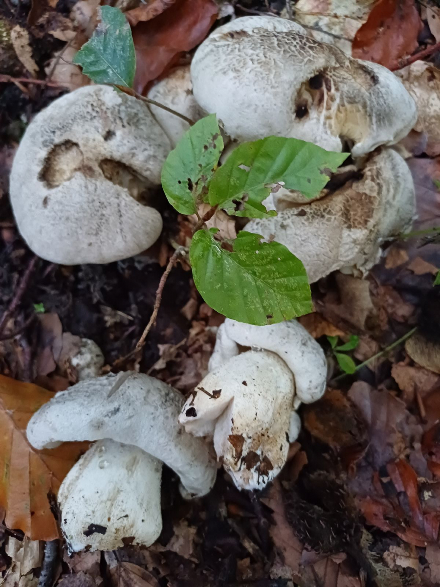 Vielleicht habt ihr dennoch eine Tendenz, ob das eher nach T. filamentosum oder nach T. pardinum aussieht. Vom Standort her würde T. filamentosum nach euren Ausführungen am besten passen, denn sie standen am Wegesrand in einem eigentlich hauptsächlich Fichtenwald, aber wie man auf dem Foto sieht, standen just dort auch Buchen.