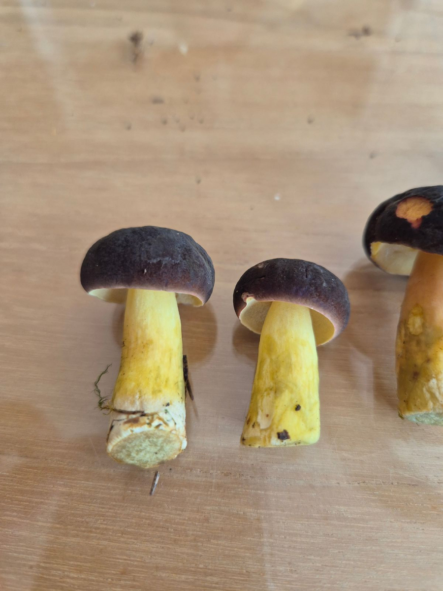 Der Stil ist sehr gelb, die Kappe sehr dunkel, fast schwarz, samtig und trocken.
