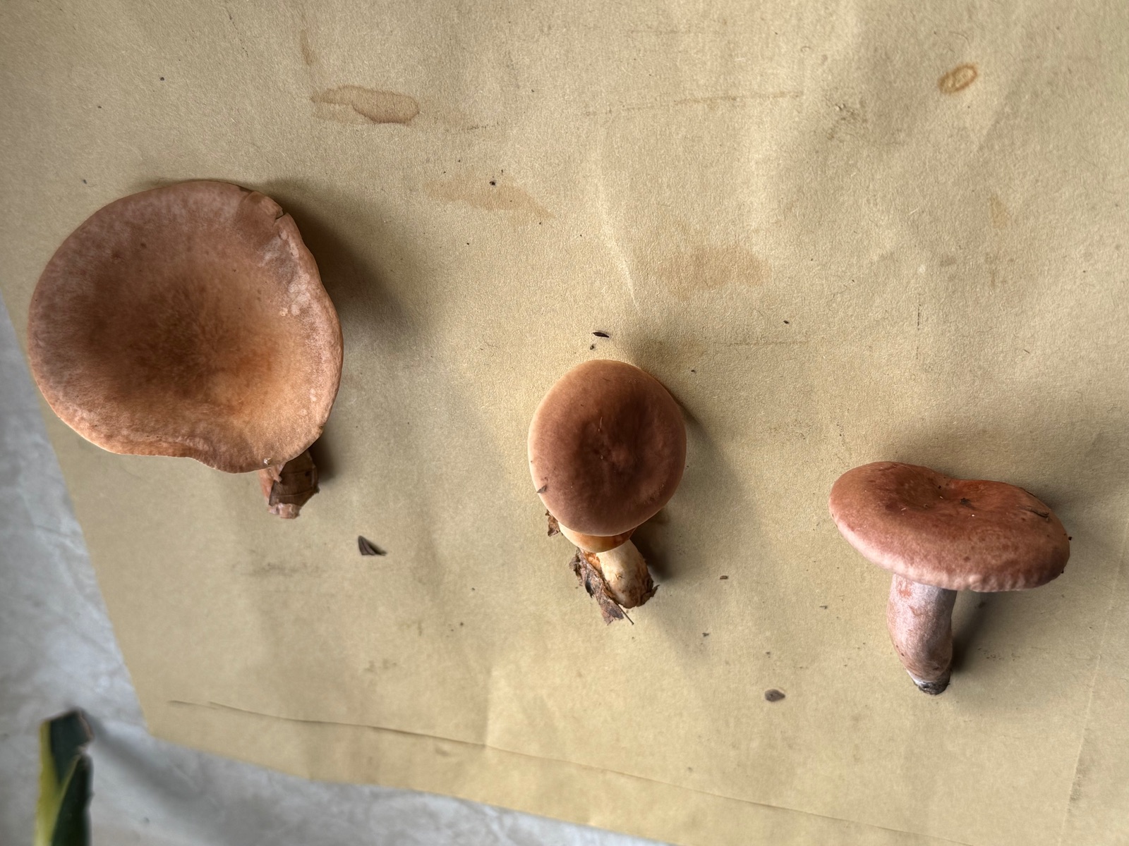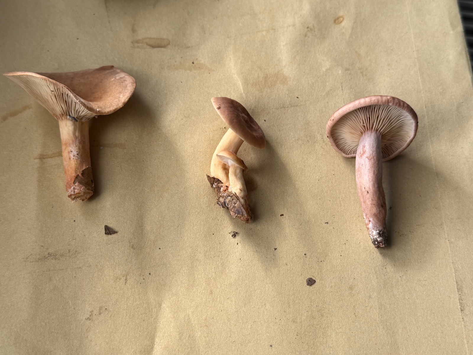 Die ersten milchen alle, milchling/reizger? Ich tippe bei den ungenießbaren auf Gemeiner Erdritterling, Rotbrauner Milchling und Nebelkappe?