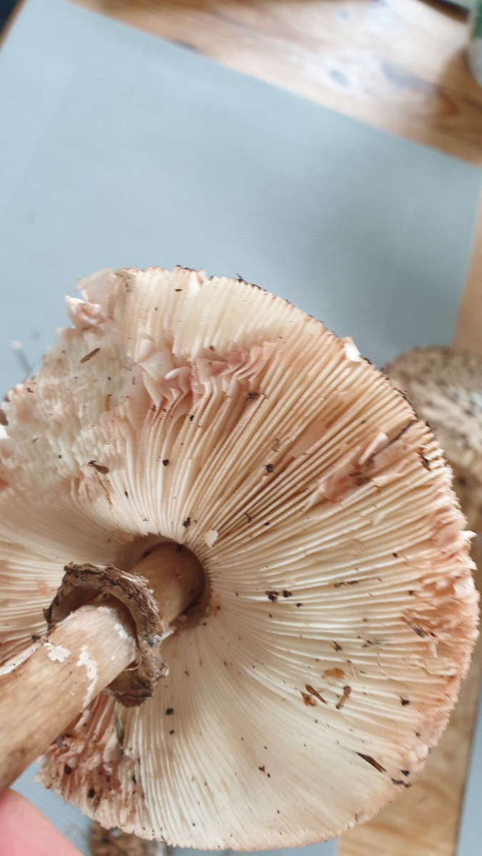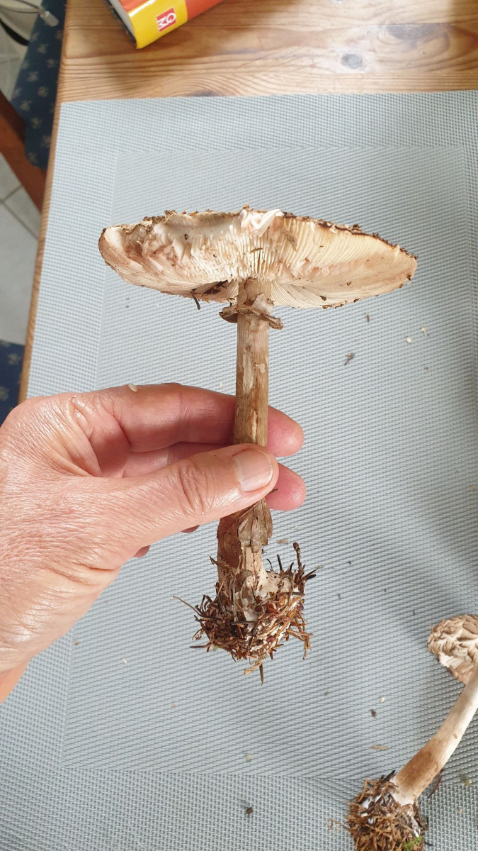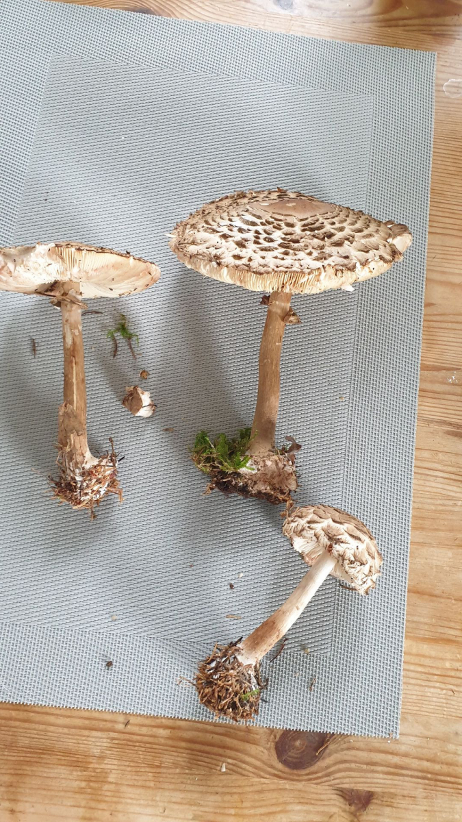 Hallo Ihr Lieben, heute habe ich im Nadelwald in der Eifel eine Pilzgruppe gefunden, bei der ich vermute, dass es sich um Riesenschirmlinge handelt. Ich bitte Euch um Eure Einschätzung. Der Ring war nicht verschieblich, sondern an einem dünnen Häutchen befestigt. Herzlichen Dank für Eure Hilfe und liebe Grüße Birgit
