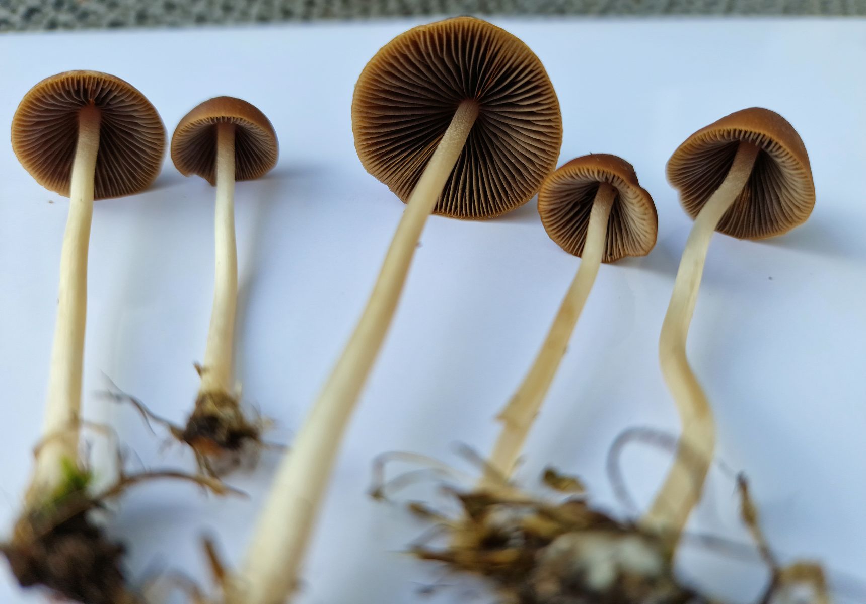 Die Stiele waren 5-10cm lang und Faserig. Die Hüte zwischen 1 und 3,5cm groß. Die Sporen sind dunkelbraun/schwarz.