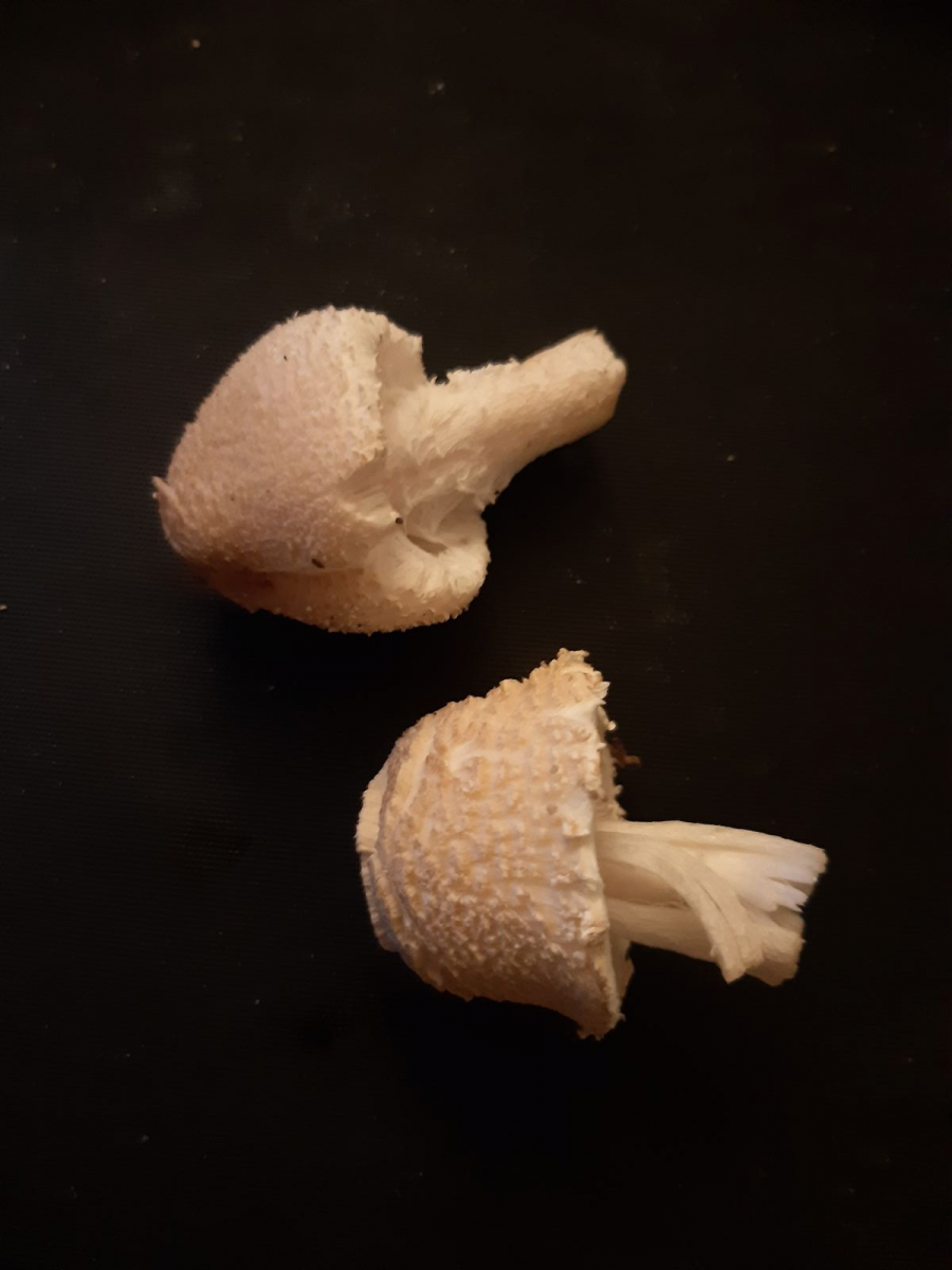Rot verfärben an der Schnittstelle tut sich der Pilz im Foto jedenfalls schon mal nicht - im Ggs. zu dem unter Punkt b.) beschriebenen.