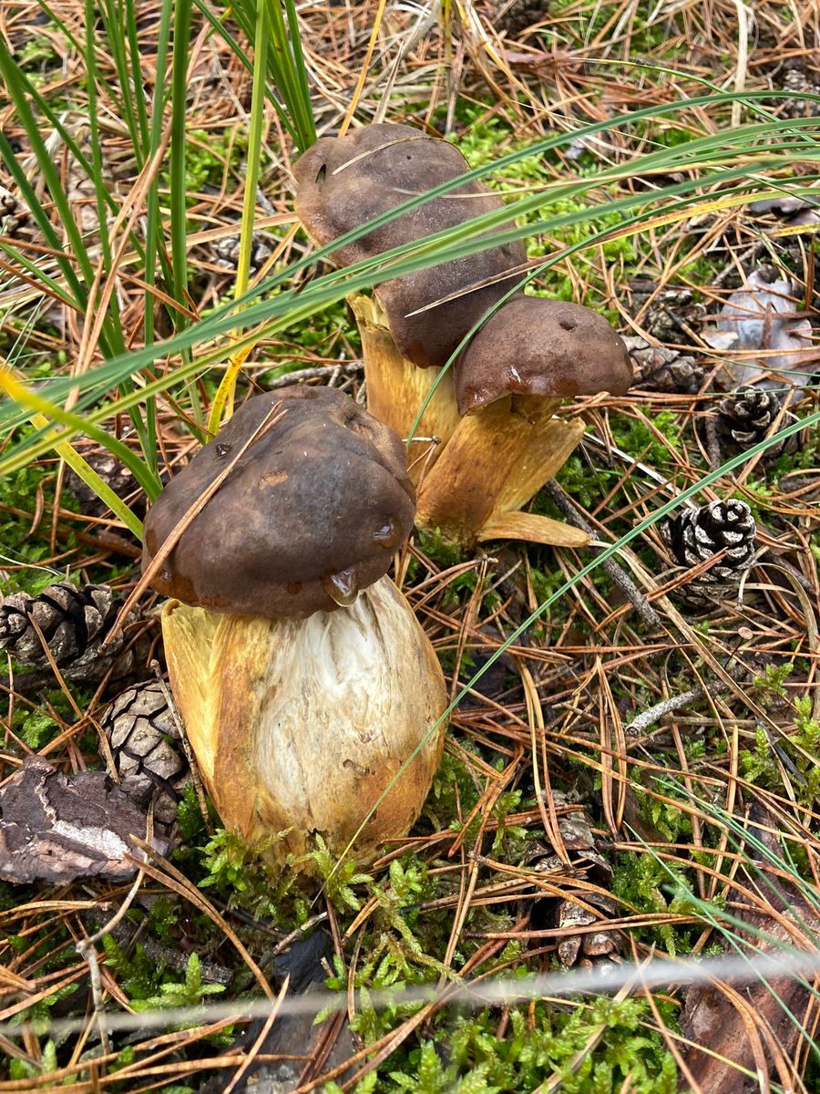 Auf dem Rückweg nach Brandenburg hielt ich dann noch kurz in einem klassischen Kiefernforst an, und siehe da: Auch die Frostschnecklinge sprießen schon! Außerdem entdeckte ich auch noch frische Maronen und Perlpilze (ohne Maden).