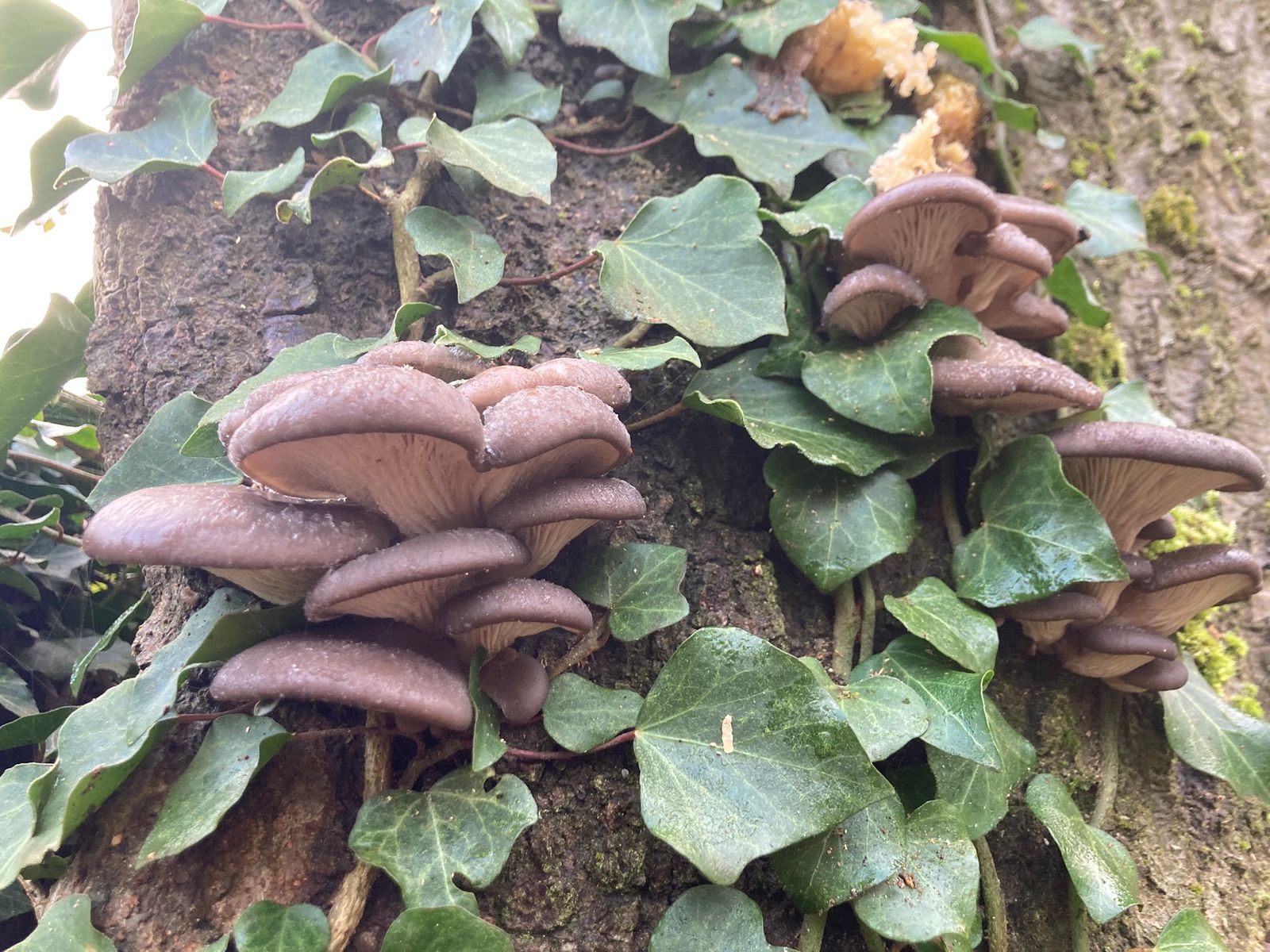 Wie war es nun aber um die Winterpilze bestellt? Tatsächlich waren einige frische Austernseitlinge zu finden! Ich war gleichzeitig überrascht schon so viele deutlich zu alte Fruchtkörper zu sehen.