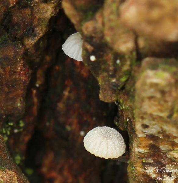 Hallo, ich habe letzte Woche diese Pilzgruppe entdeckt. Sie waren recht klein, Hutdurchmesse ca. 1cm, aufgeschirmt ca. 2cm, Höhe ca. 1-2cm. Sie wachsen auf morschen Eichenästen. Die Pilze sind vom Regen noch nass. Wer kann mir bei der Bestimmung helfen?