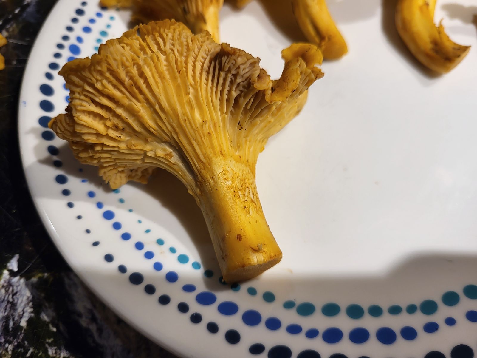 Wir kennen Pfifferlinge nur mit Leisten, die weit am Steil herablaufen. Bei den heute gefunden Pilzen enden die Leisten jedoch ungewohnt hoch. Ist das eine Variante? Ich freue mich über eure Einschätzung,