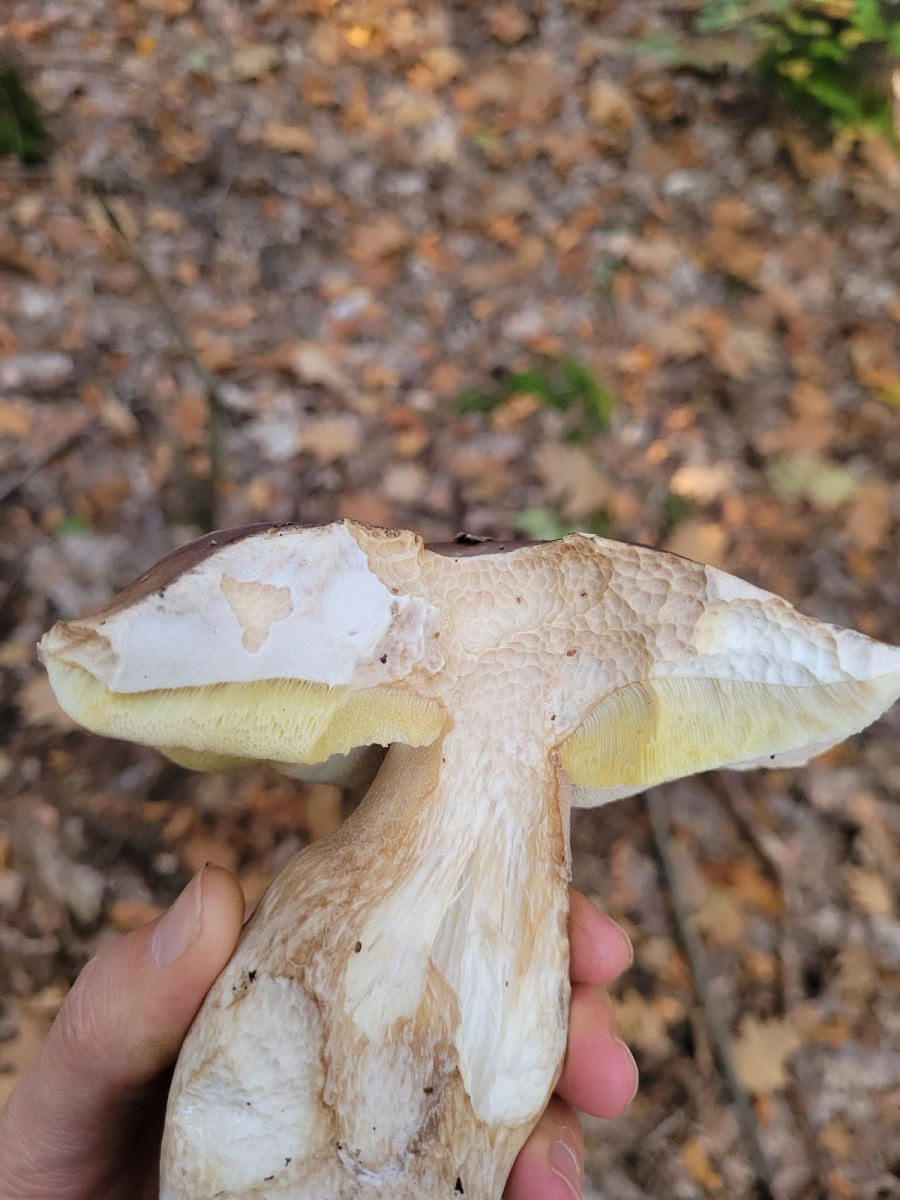 ich war heute (erfolgreich) auf der Suche nach Rötelritterlingen und habe dabei auch diesen weißen Pilz gefunden. Bisher konnte ich ihn nicht eindeutig zuordnen, weshalb ich euch da um Hilfe fragen möchte.