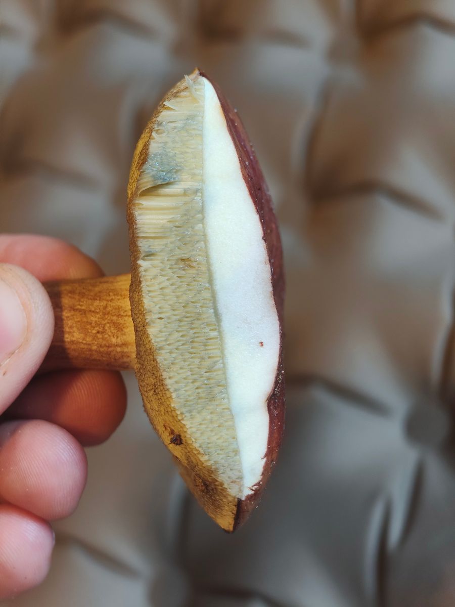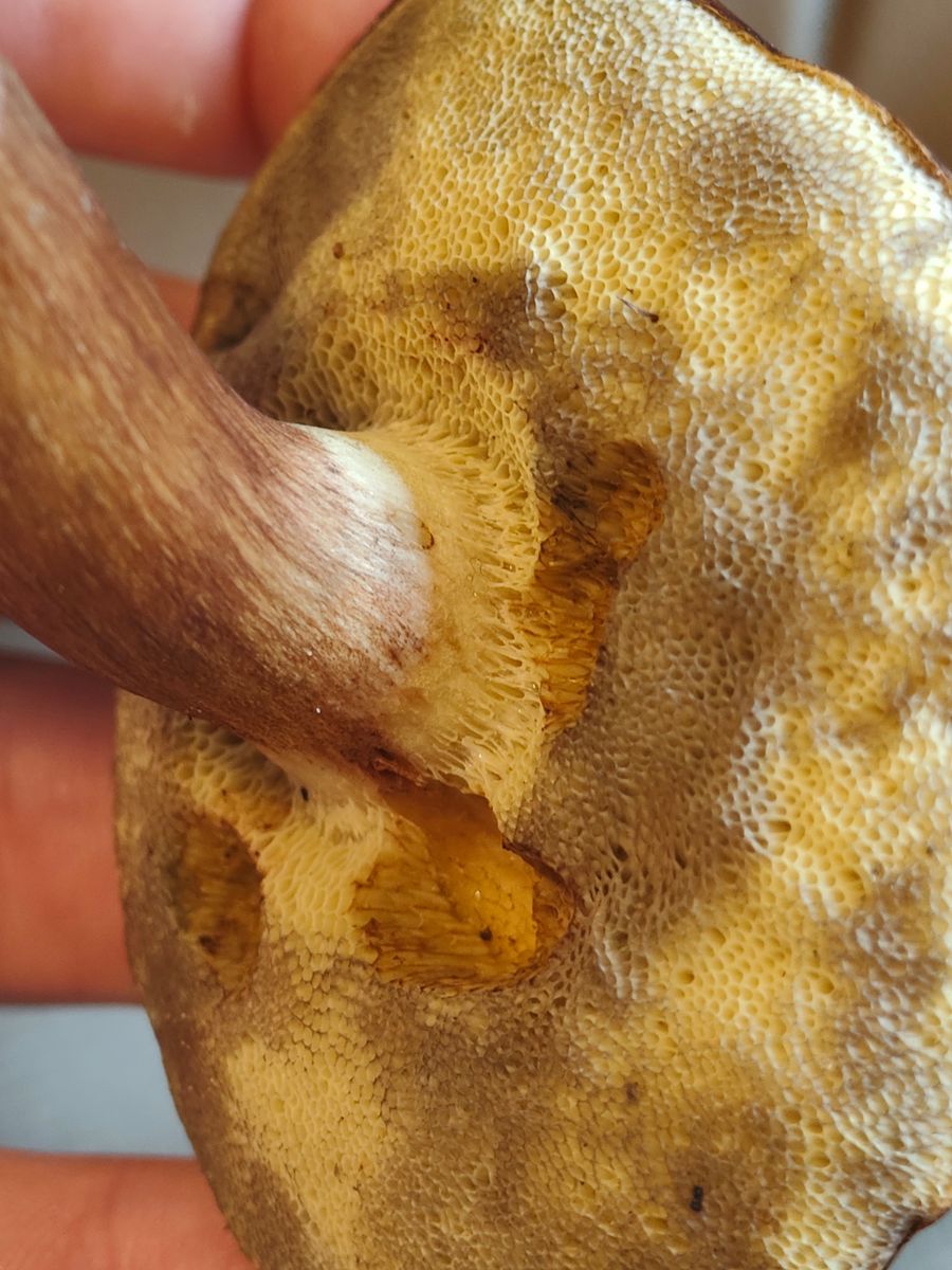 Hallo ich habe folgenden röhrling gefunden, sein Hut ist rutschig aktuell Regnet es den ganzen tag, nach dem Anschneiden hat er direkt gebläut die röhrenschicht läuft ganz wenig am Stiel herunter, hut und stiehl sind festFundort und bilder füge ich hinzu,